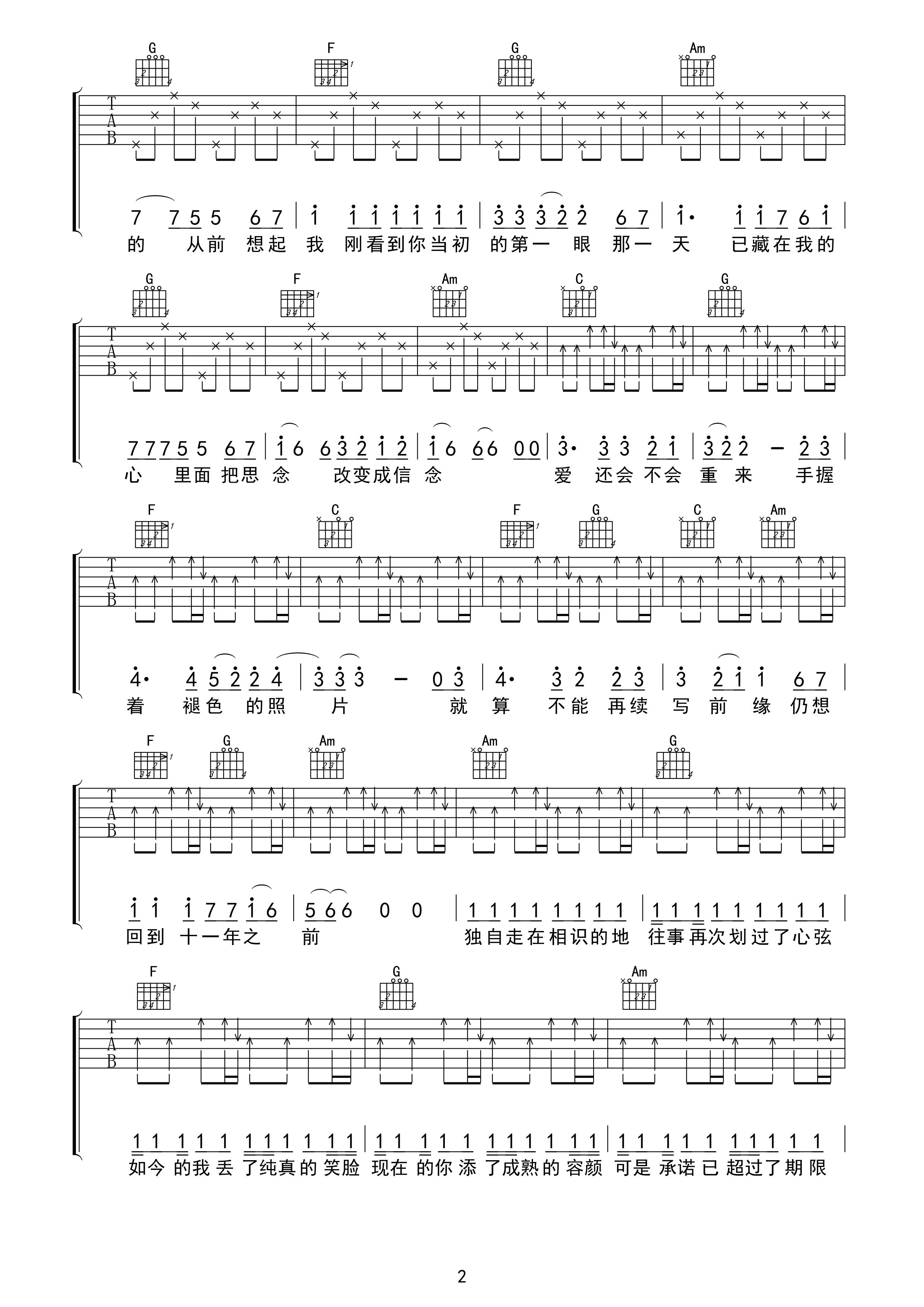 《邱永传《十一年吉他谱》(C调)》内容来自于互联网,不能保证内容的准确性与完整性,仅供学习交流欣赏,请勿用于其它用途,内容版权归原作者及来源网站所有,如有侵犯到您的权益请来信告知,我们将及时删除。