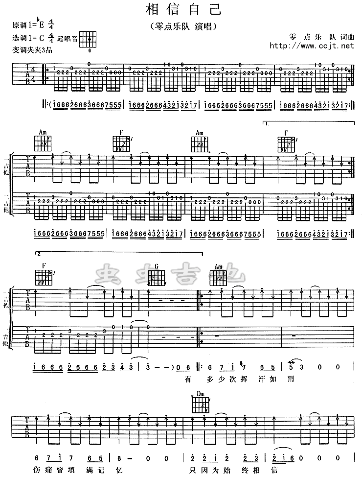 《虫虫《相信自己吉他谱》(C调)》内容来自于互联网,不能保证内容的准确性与完整性,仅供学习交流欣赏,请勿用于其它用途,内容版权归原作者及来源网站所有,如有侵犯到您的权益请来信告知,我们将及时删除。