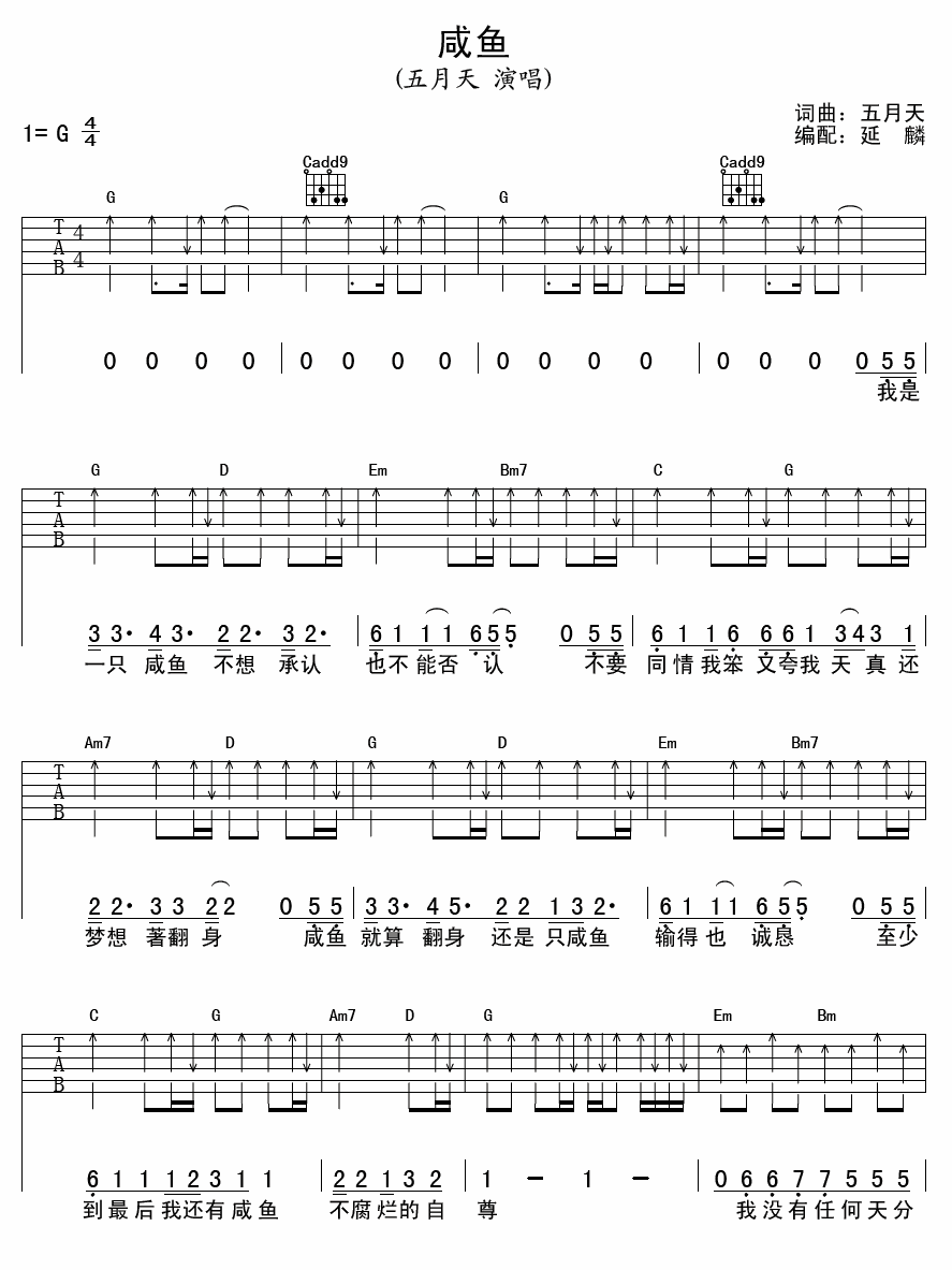 《五月天《咸鱼吉他谱》(G调)》内容来自于互联网,不能保证内容的准确性与完整性,仅供学习交流欣赏,请勿用于其它用途,内容版权归原作者及来源网站所有,如有侵犯到您的权益请来信告知,我们将及时删除。