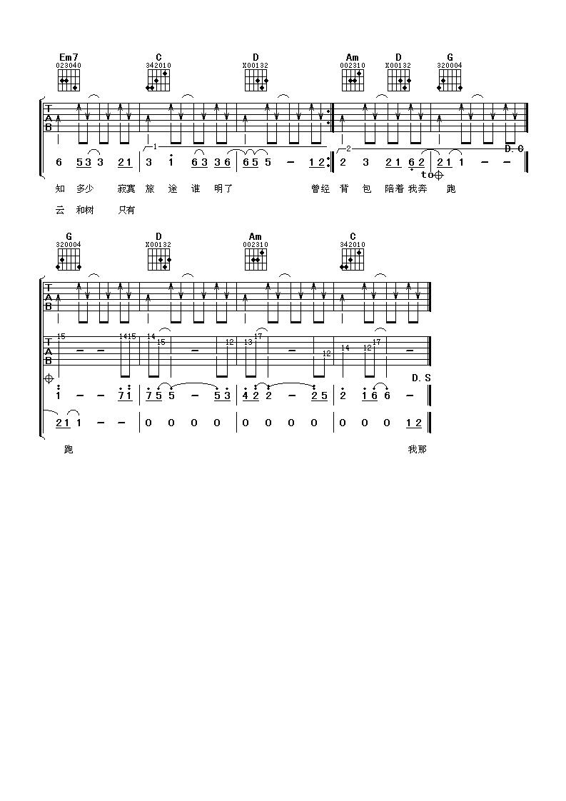《《背包吉他谱》(G调)》内容来自于互联网,不能保证内容的准确性与完整性,仅供学习交流欣赏,请勿用于其它用途,内容版权归原作者及来源网站所有,如有侵犯到您的权益请来信告知,我们将及时删除。