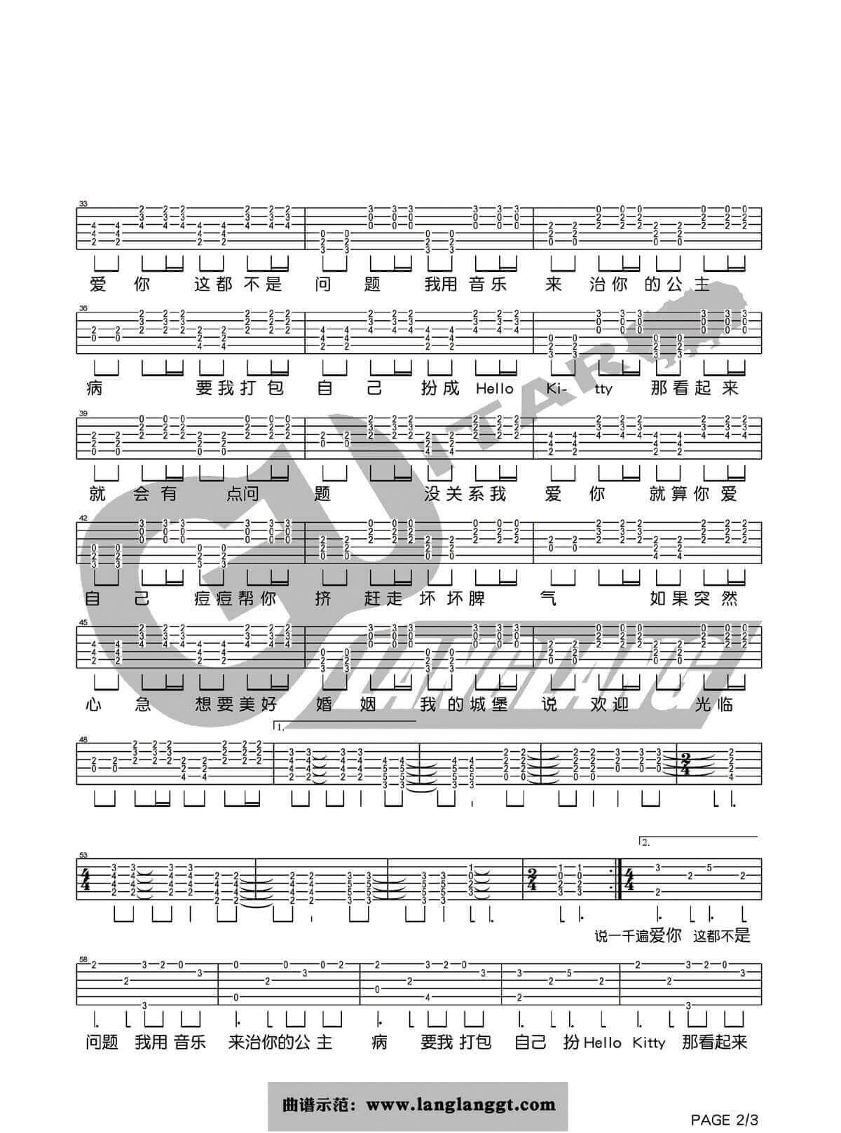 《周杰伦《公主病吉他谱》》内容来自于互联网,不能保证内容的准确性与完整性,仅供学习交流欣赏,请勿用于其它用途,内容版权归原作者及来源网站所有,如有侵犯到您的权益请来信告知,我们将及时删除。