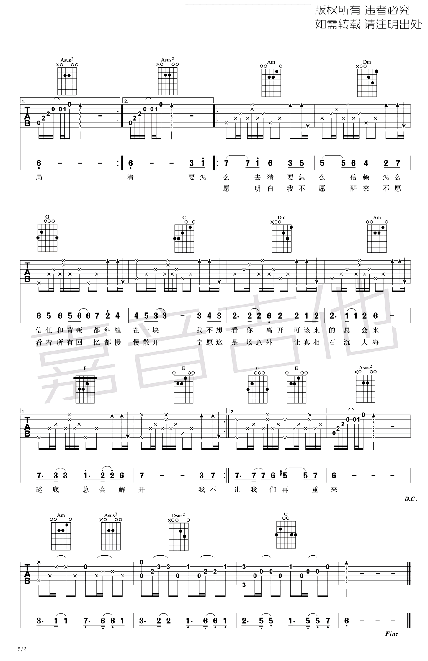 《段奥娟《我不愿明白吉他谱》(C调)》内容来自于互联网,不能保证内容的准确性与完整性,仅供学习交流欣赏,请勿用于其它用途,内容版权归原作者及来源网站所有,如有侵犯到您的权益请来信告知,我们将及时删除。