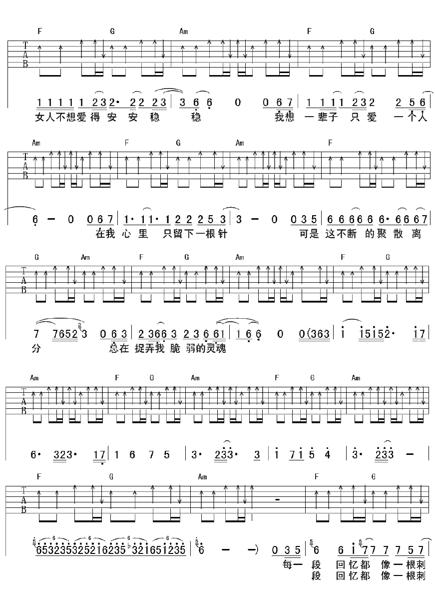 《娃娃《刺心吉他谱》(C调)》内容来自于互联网,不能保证内容的准确性与完整性,仅供学习交流欣赏,请勿用于其它用途,内容版权归原作者及来源网站所有,如有侵犯到您的权益请来信告知,我们将及时删除。