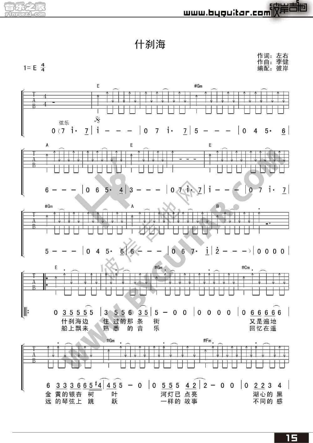 《李健《什刹海吉他谱》(F调)》内容来自于互联网,不能保证内容的准确性与完整性,仅供学习交流欣赏,请勿用于其它用途,内容版权归原作者及来源网站所有,如有侵犯到您的权益请来信告知,我们将及时删除。