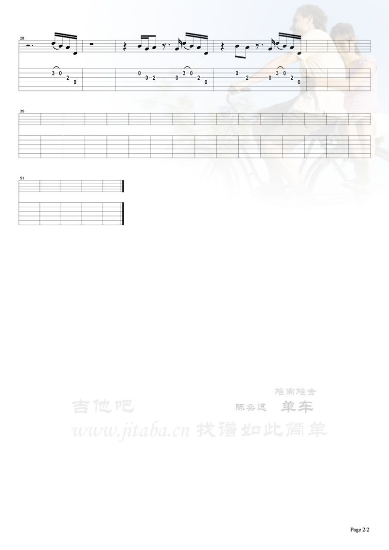 《陈奕迅《单车吉他谱》》内容来自于互联网,不能保证内容的准确性与完整性,仅供学习交流欣赏,请勿用于其它用途,内容版权归原作者及来源网站所有,如有侵犯到您的权益请来信告知,我们将及时删除。