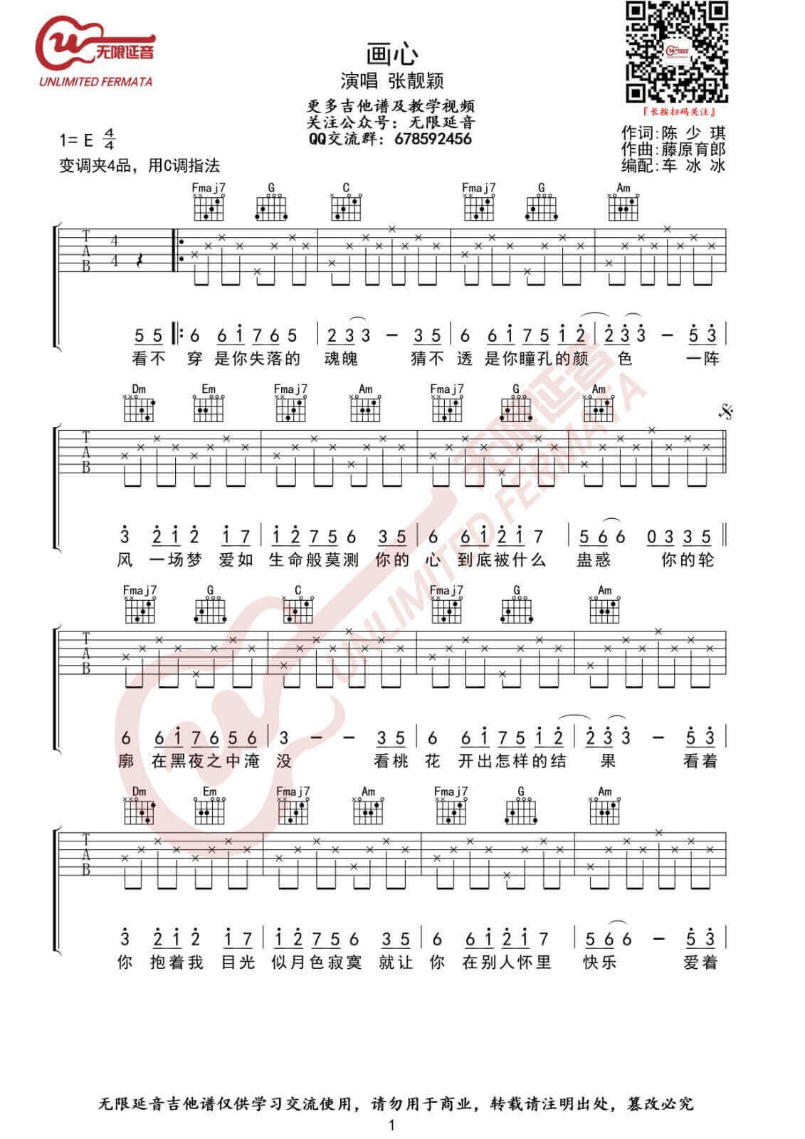 《张靓颖《画心吉他谱》(C调)》内容来自于互联网,不能保证内容的准确性与完整性,仅供学习交流欣赏,请勿用于其它用途,内容版权归原作者及来源网站所有,如有侵犯到您的权益请来信告知,我们将及时删除。