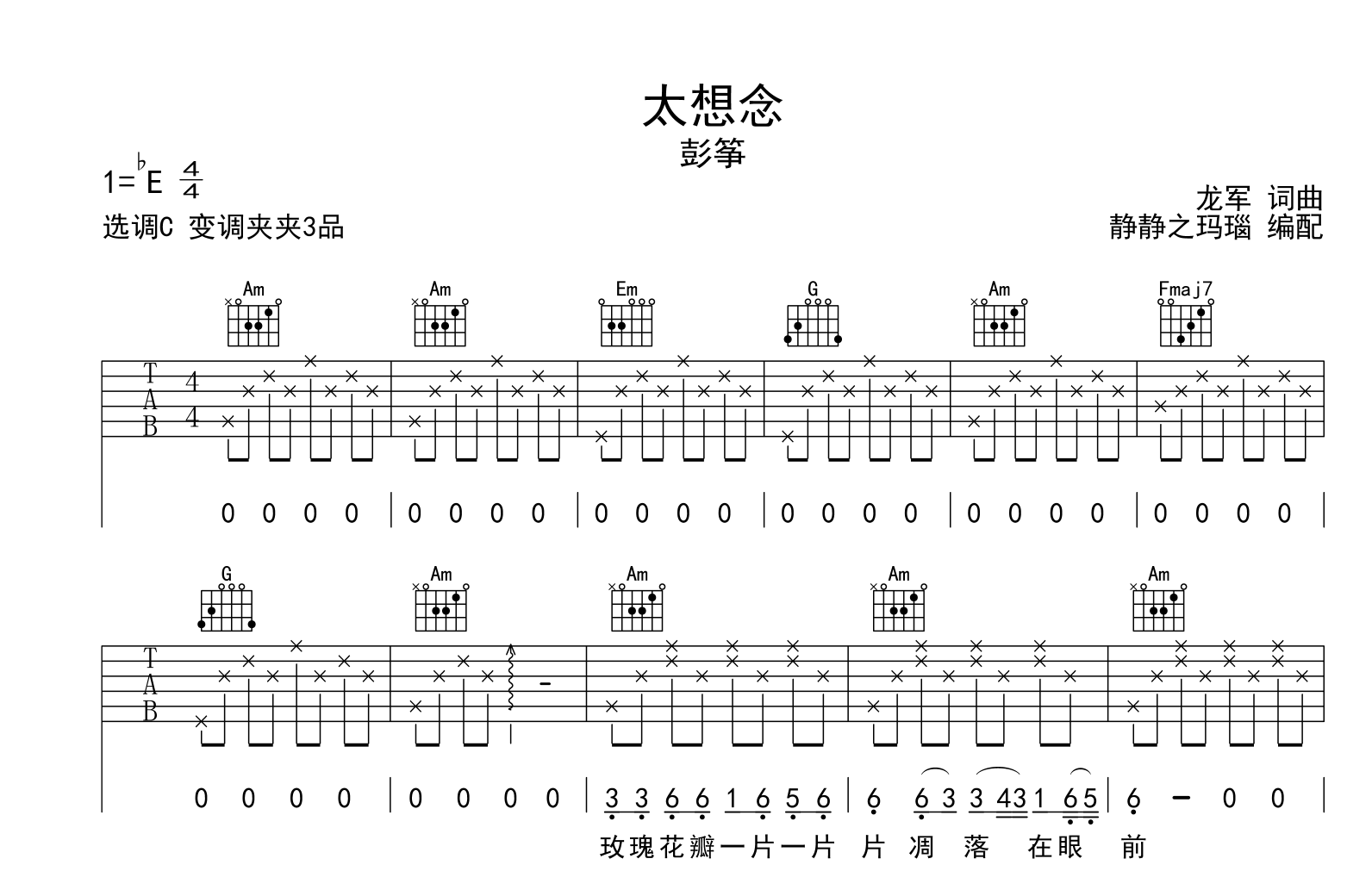《彭筝《太想念吉他谱》(C调)》内容来自于互联网,不能保证内容的准确性与完整性,仅供学习交流欣赏,请勿用于其它用途,内容版权归原作者及来源网站所有,如有侵犯到您的权益请来信告知,我们将及时删除。