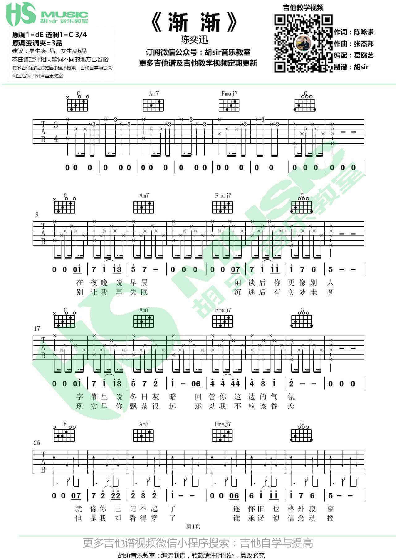 《陈奕迅《渐渐吉他谱》(C调)》内容来自于互联网,不能保证内容的准确性与完整性,仅供学习交流欣赏,请勿用于其它用途,内容版权归原作者及来源网站所有,如有侵犯到您的权益请来信告知,我们将及时删除。