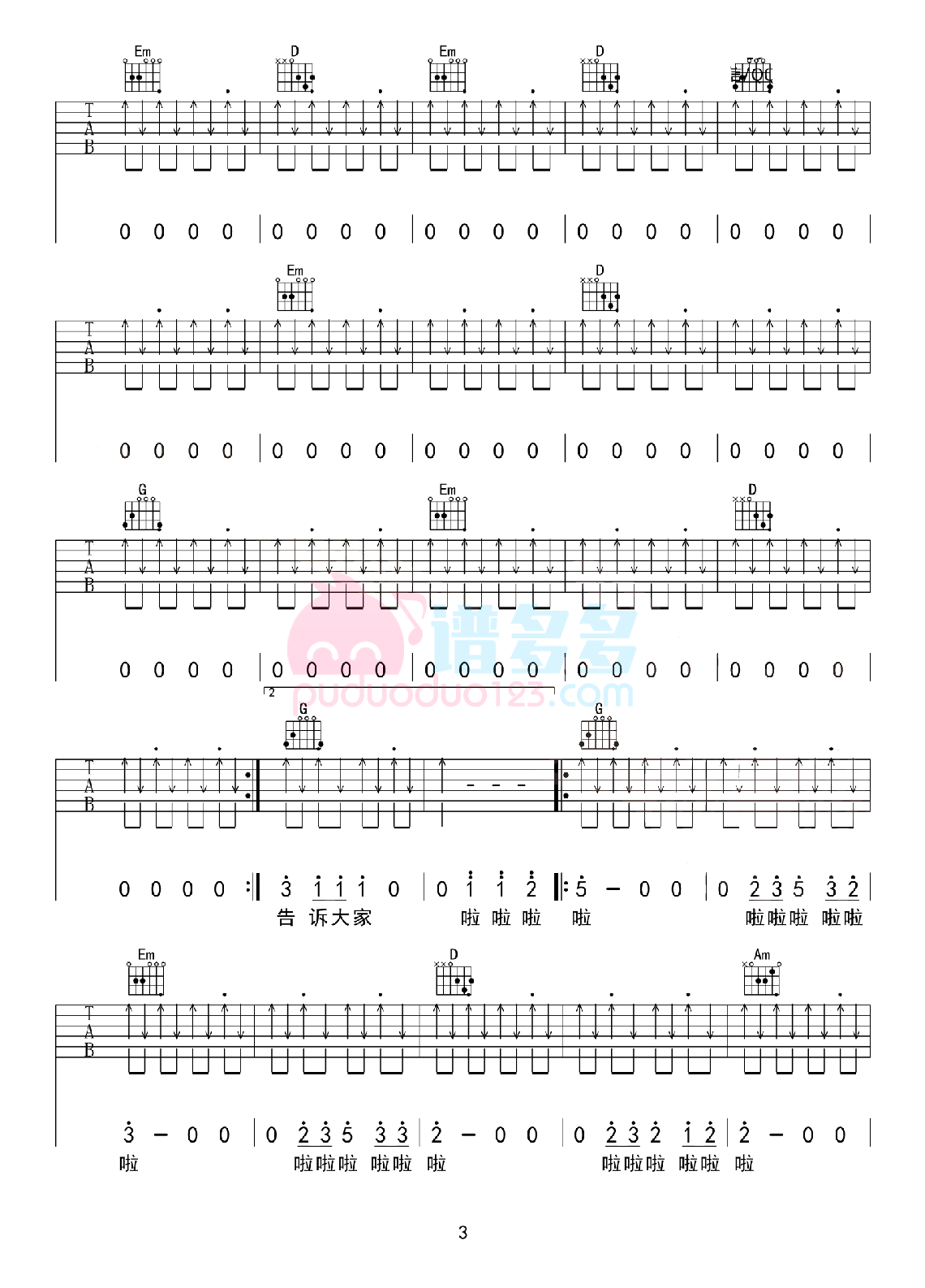 《五条人《问题出现我再告诉大家吉他谱》(A调)》内容来自于互联网,不能保证内容的准确性与完整性,仅供学习交流欣赏,请勿用于其它用途,内容版权归原作者及来源网站所有,如有侵犯到您的权益请来信告知,我们将及时删除。
