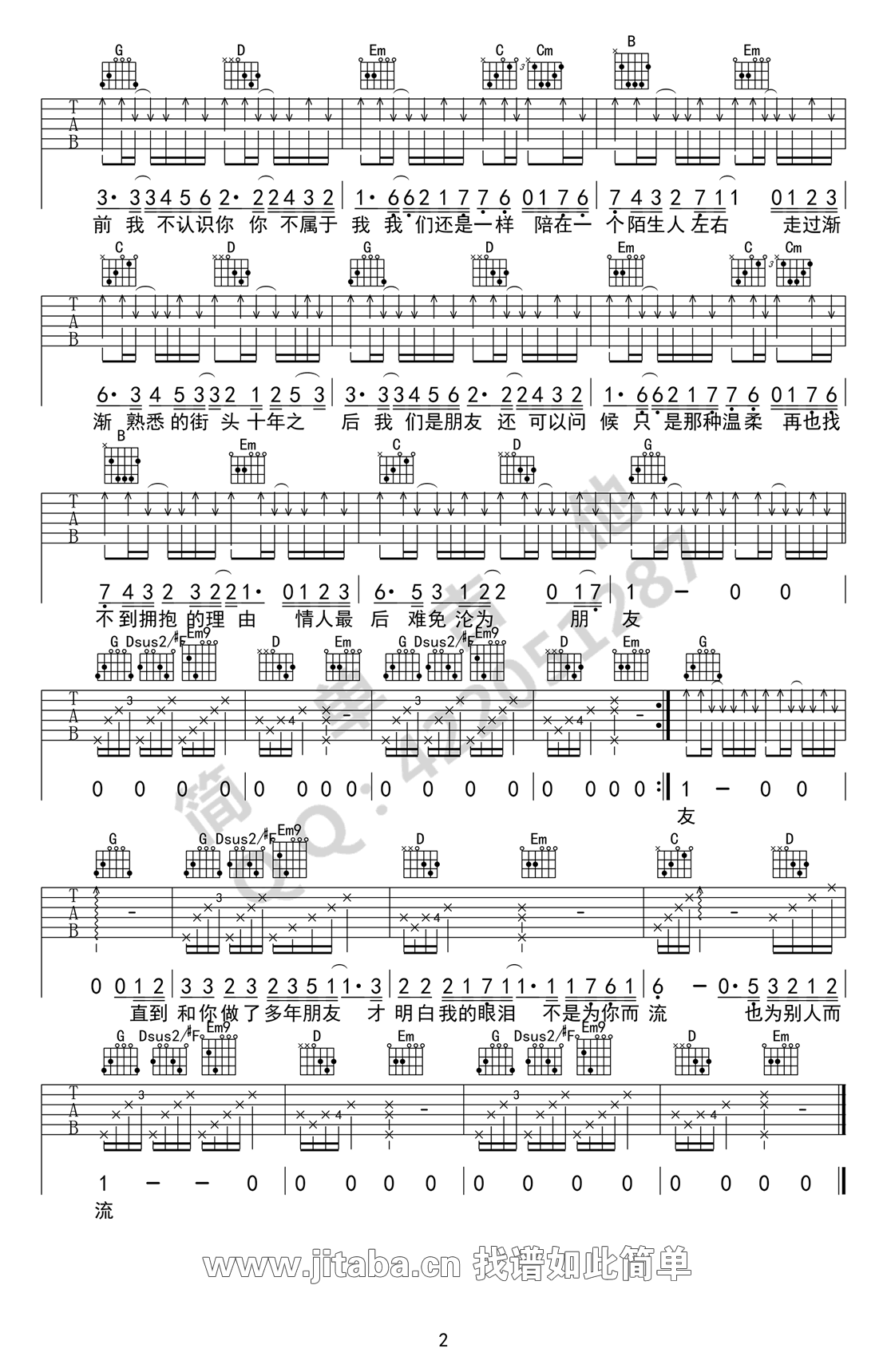 《陈奕迅《十年吉他谱》(G调)》内容来自于互联网,不能保证内容的准确性与完整性,仅供学习交流欣赏,请勿用于其它用途,内容版权归原作者及来源网站所有,如有侵犯到您的权益请来信告知,我们将及时删除。