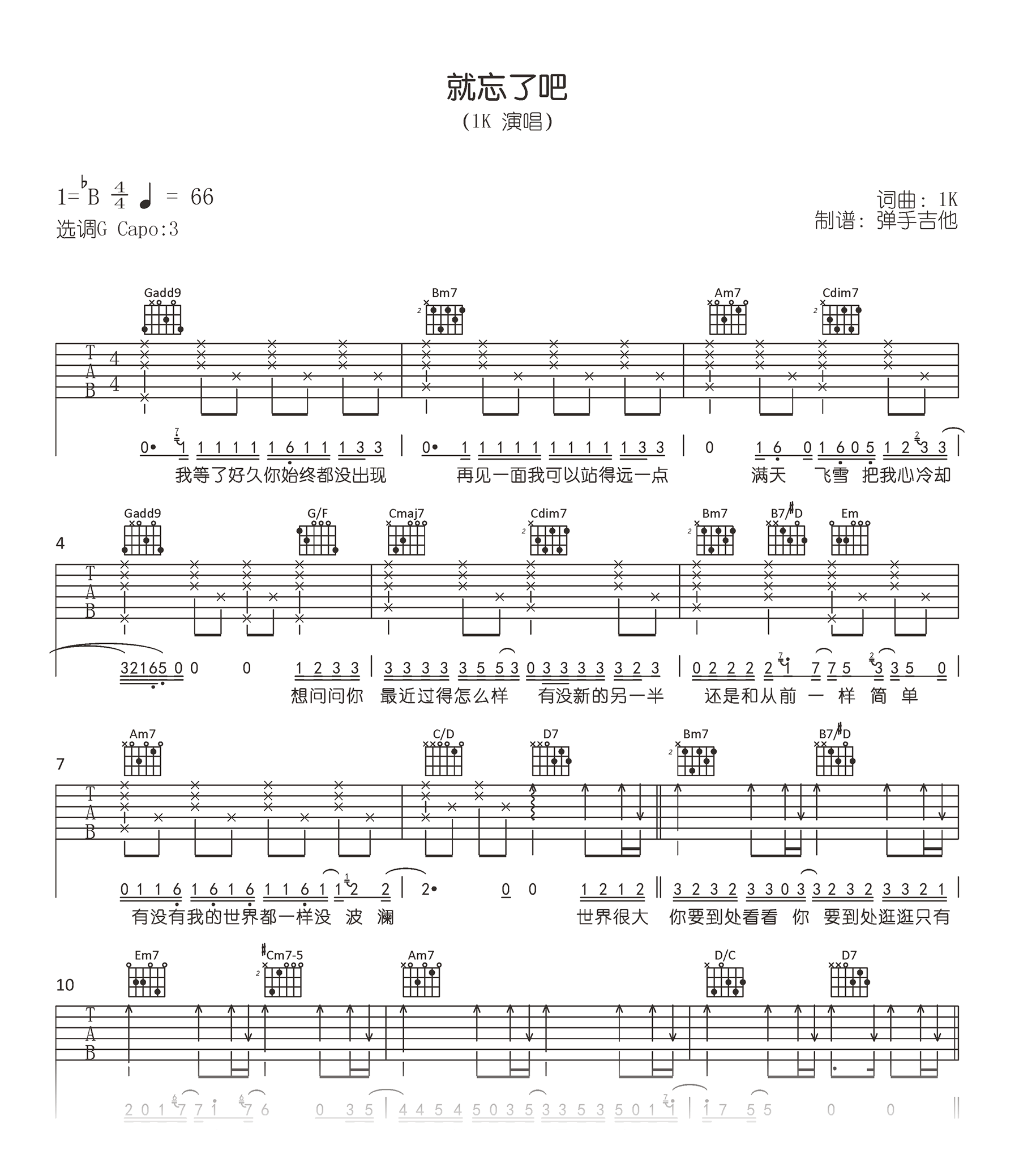 一首深受欢迎的歌曲,1K《就忘了吧吉他谱》