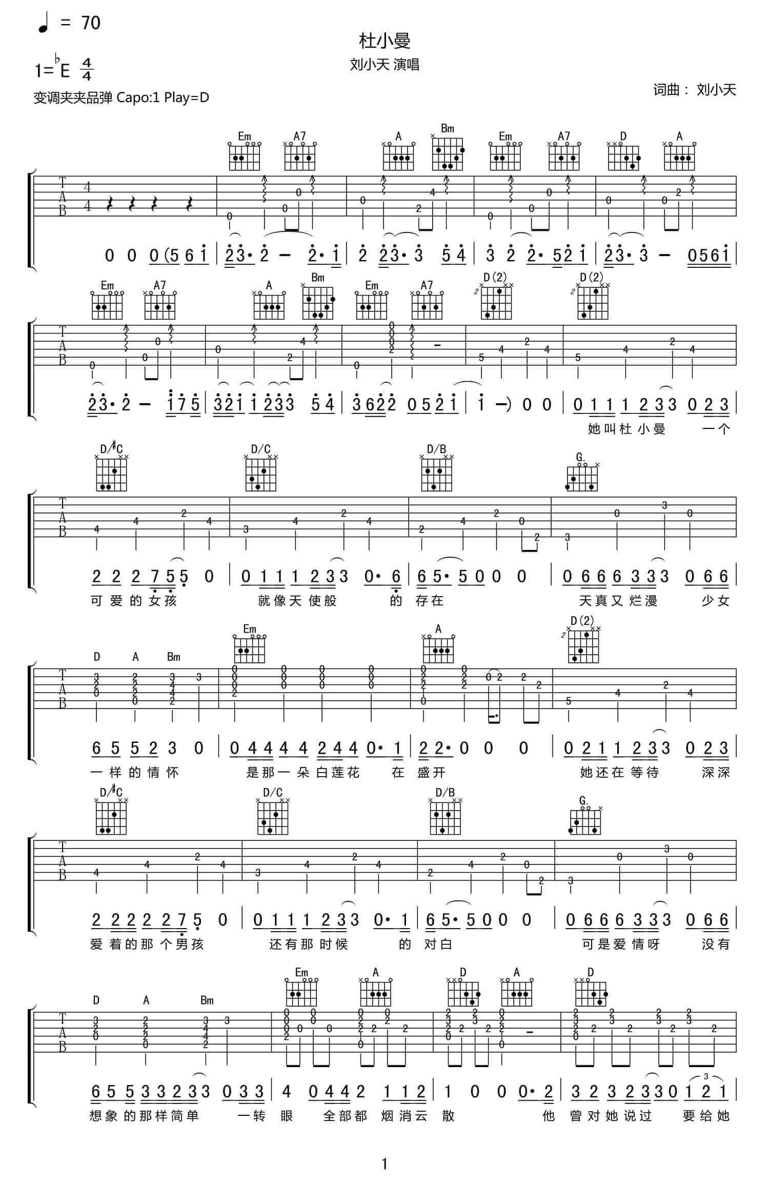 《小曼《杜吉他谱》(D调)》内容来自于互联网,不能保证内容的准确性与完整性,仅供学习交流欣赏,请勿用于其它用途,内容版权归原作者及来源网站所有,如有侵犯到您的权益请来信告知,我们将及时删除。