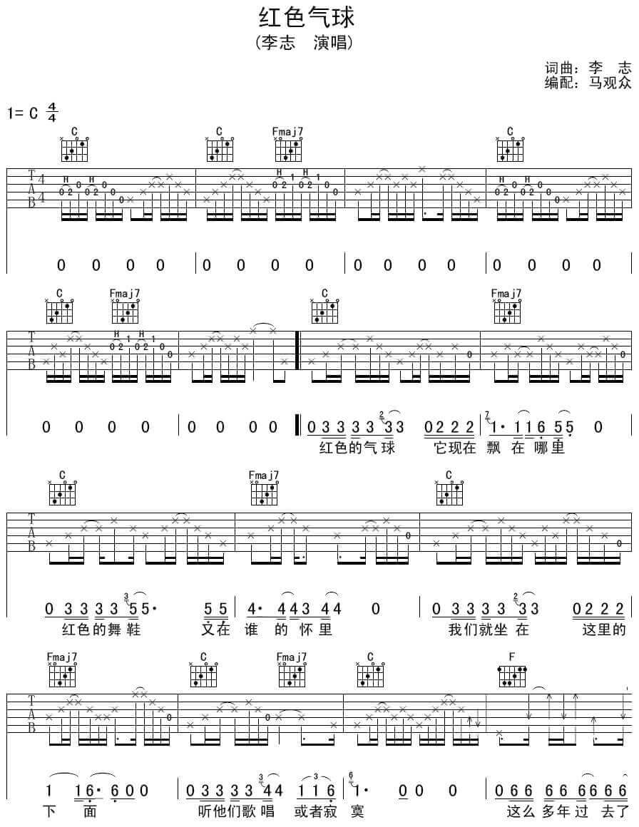 《《红色气球吉他谱》(C调)》内容来自于互联网,不能保证内容的准确性与完整性,仅供学习交流欣赏,请勿用于其它用途,内容版权归原作者及来源网站所有,如有侵犯到您的权益请来信告知,我们将及时删除。