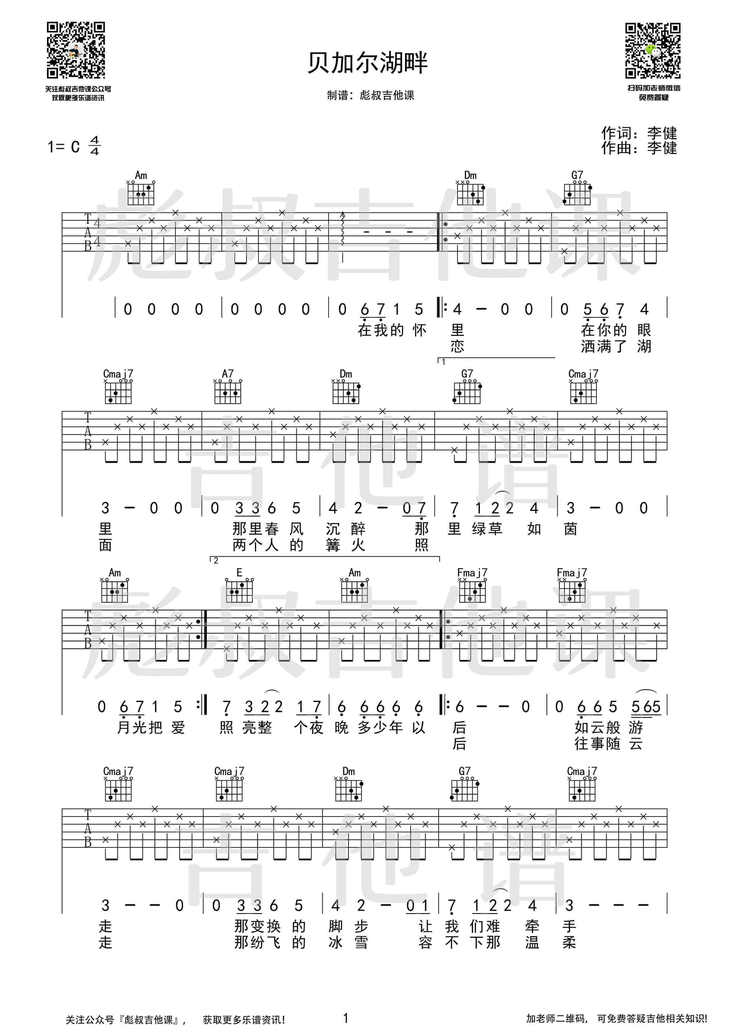 《李健《贝加尔湖畔吉他谱》(C调)》内容来自于互联网,不能保证内容的准确性与完整性,仅供学习交流欣赏,请勿用于其它用途,内容版权归原作者及来源网站所有,如有侵犯到您的权益请来信告知,我们将及时删除。