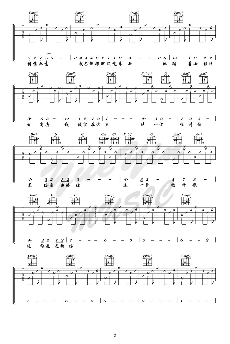 《陈粒《怪情歌吉他谱》》内容来自于互联网,不能保证内容的准确性与完整性,仅供学习交流欣赏,请勿用于其它用途,内容版权归原作者及来源网站所有,如有侵犯到您的权益请来信告知,我们将及时删除。