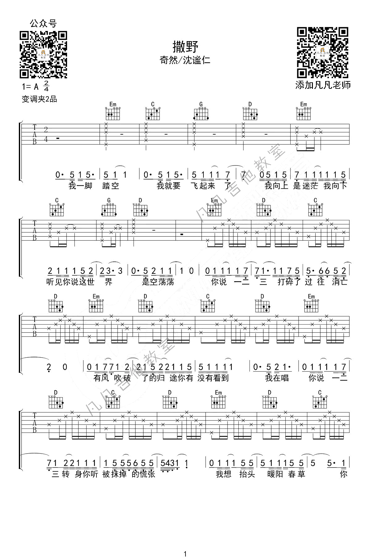 《奇然《撒野吉他谱》》内容来自于互联网,不能保证内容的准确性与完整性,仅供学习交流欣赏,请勿用于其它用途,内容版权归原作者及来源网站所有,如有侵犯到您的权益请来信告知,我们将及时删除。