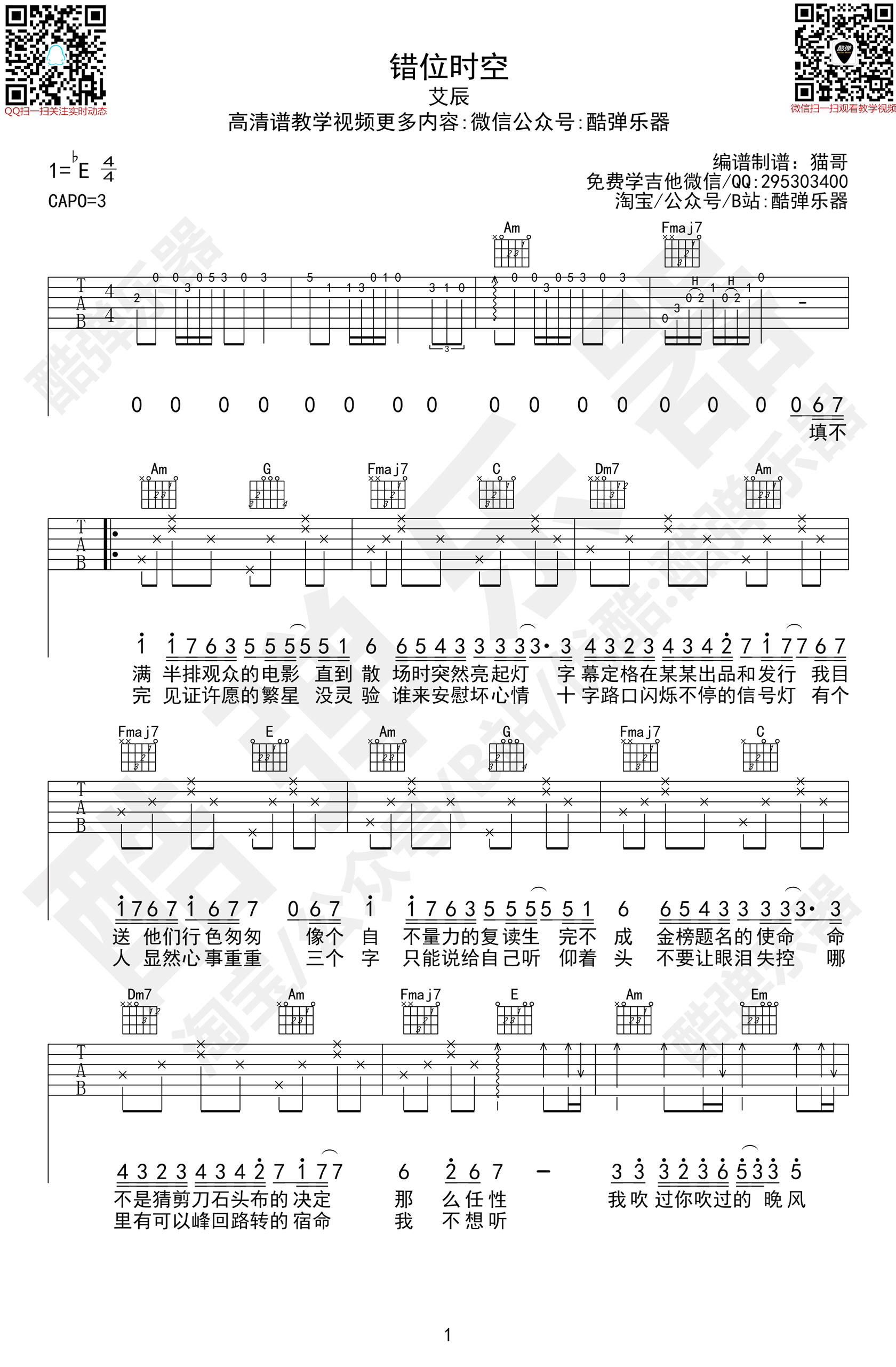 《艾辰《错位时空吉他谱》(C调)》内容来自于互联网,不能保证内容的准确性与完整性,仅供学习交流欣赏,请勿用于其它用途,内容版权归原作者及来源网站所有,如有侵犯到您的权益请来信告知,我们将及时删除。