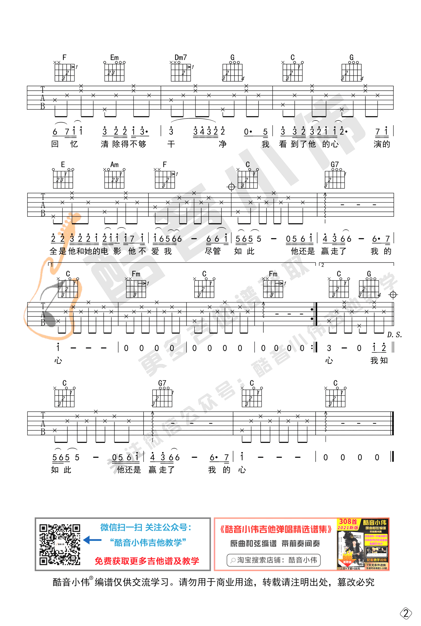 《莫文蔚《他不爱我吉他谱》(C调)》内容来自于互联网,不能保证内容的准确性与完整性,仅供学习交流欣赏,请勿用于其它用途,内容版权归原作者及来源网站所有,如有侵犯到您的权益请来信告知,我们将及时删除。