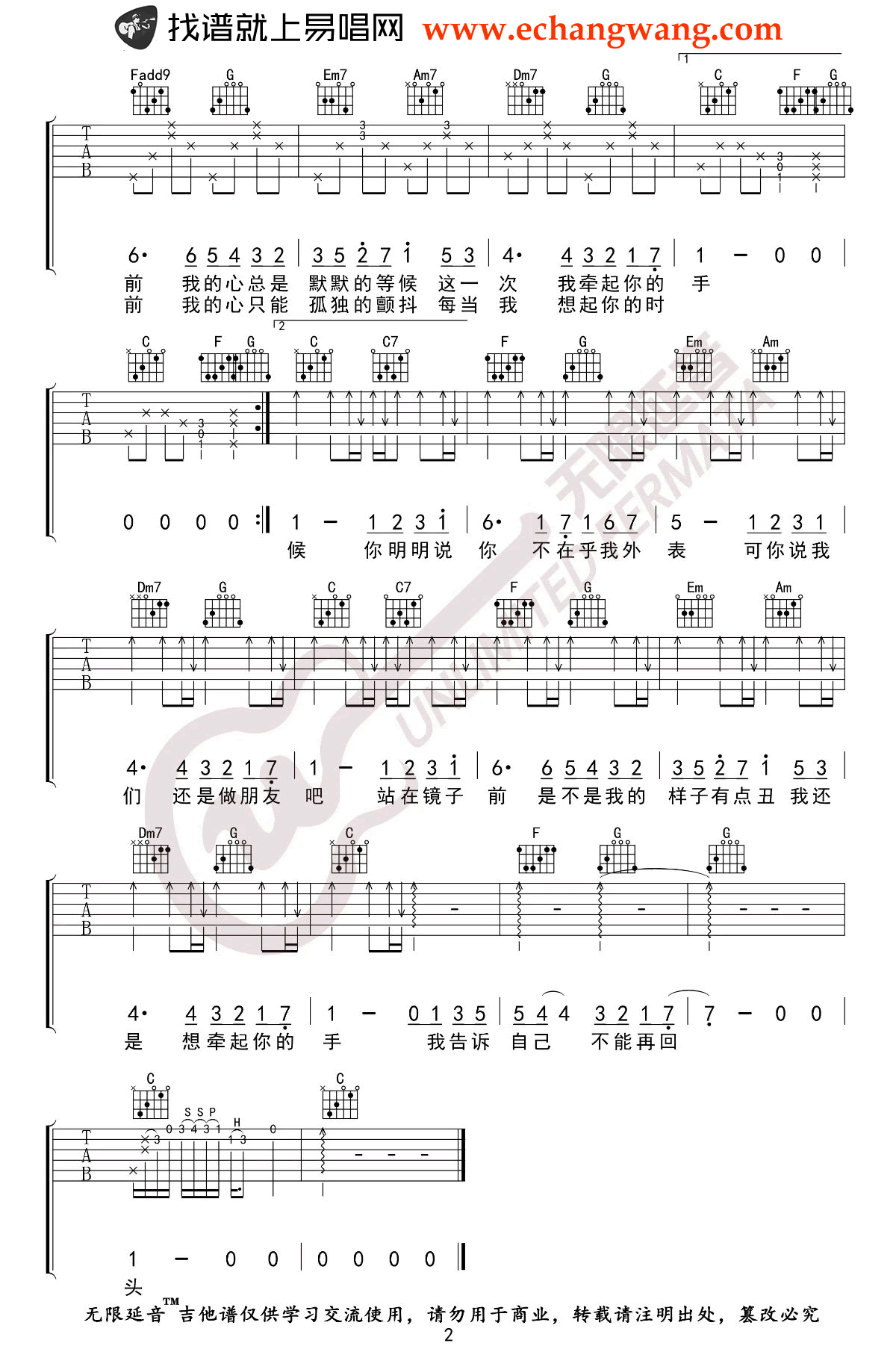 《杨振宇《我们还是做朋友吧吉他谱》(C调)》内容来自于互联网,不能保证内容的准确性与完整性,仅供学习交流欣赏,请勿用于其它用途,内容版权归原作者及来源网站所有,如有侵犯到您的权益请来信告知,我们将及时删除。