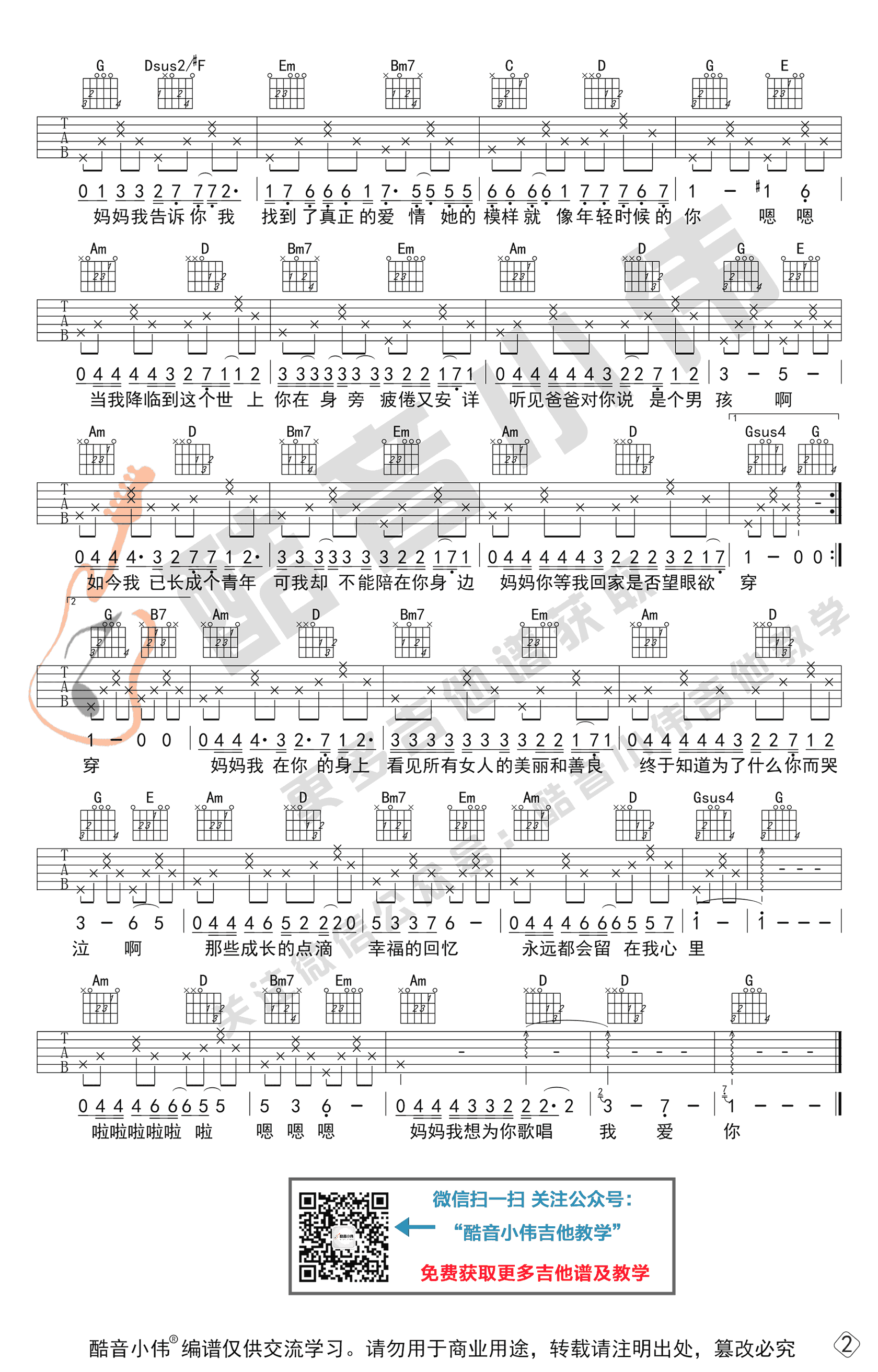 《李健《今天是你的生日妈妈吉他谱》》内容来自于互联网,不能保证内容的准确性与完整性,仅供学习交流欣赏,请勿用于其它用途,内容版权归原作者及来源网站所有,如有侵犯到您的权益请来信告知,我们将及时删除。