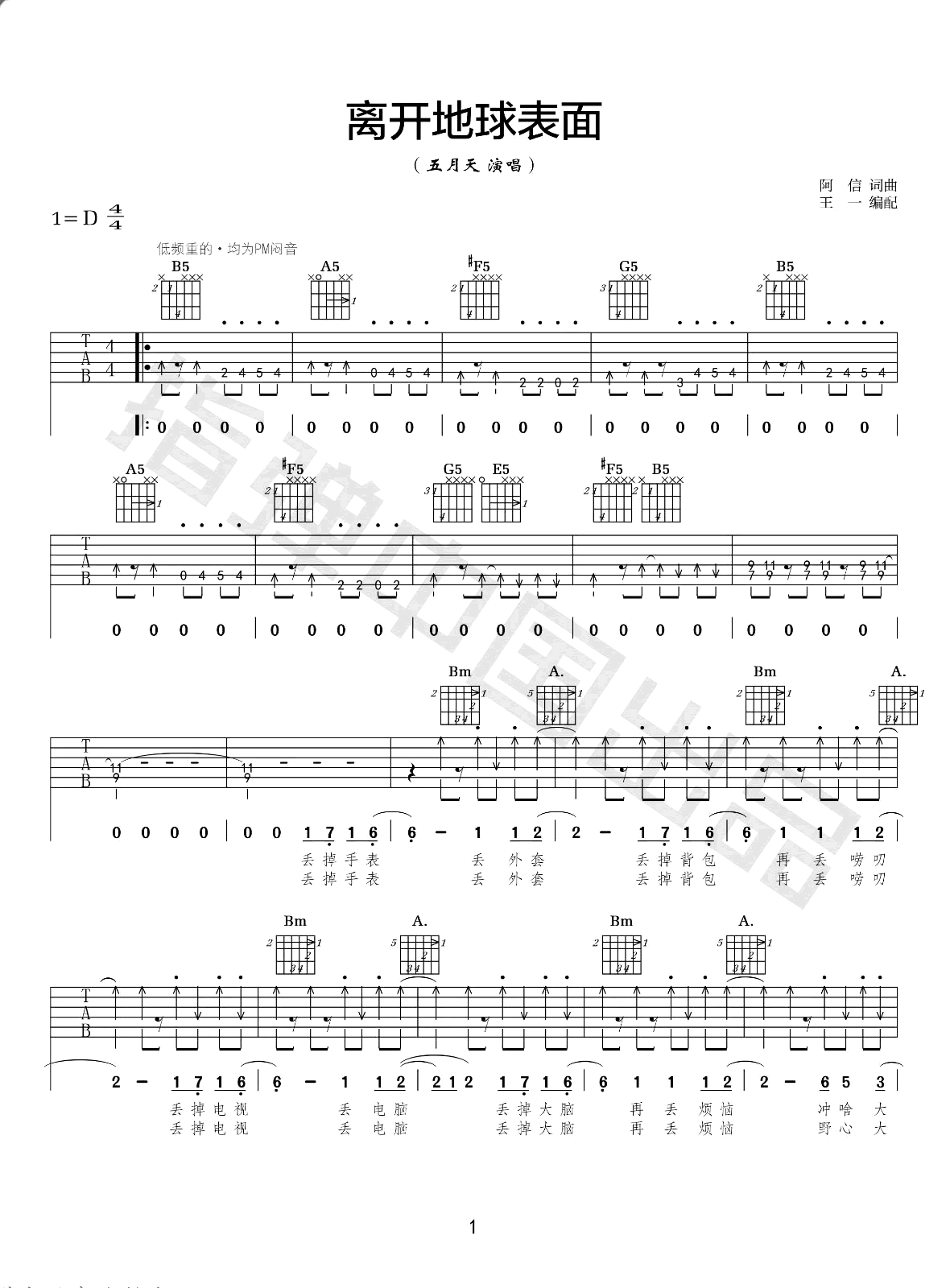 《五月天《离开地球表面吉他谱》(D调)》内容来自于互联网,不能保证内容的准确性与完整性,仅供学习交流欣赏,请勿用于其它用途,内容版权归原作者及来源网站所有,如有侵犯到您的权益请来信告知,我们将及时删除。