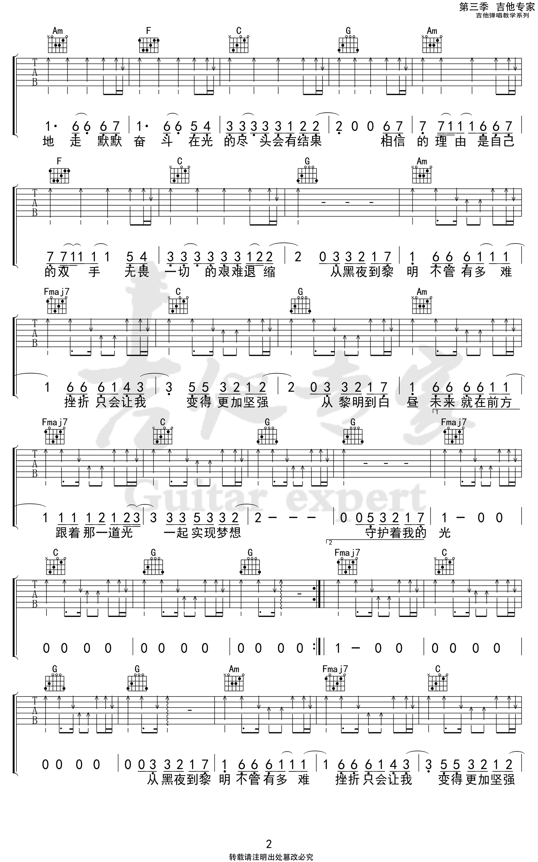 《李巍V仔《守护着我的光吉他谱》(C调)》内容来自于互联网,不能保证内容的准确性与完整性,仅供学习交流欣赏,请勿用于其它用途,内容版权归原作者及来源网站所有,如有侵犯到您的权益请来信告知,我们将及时删除。