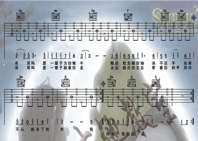 《李团长《我很丑温柔还有用吗吉他谱》》内容来自于互联网,不能保证内容的准确性与完整性,仅供学习交流欣赏,请勿用于其它用途,内容版权归原作者及来源网站所有,如有侵犯到您的权益请来信告知,我们将及时删除。