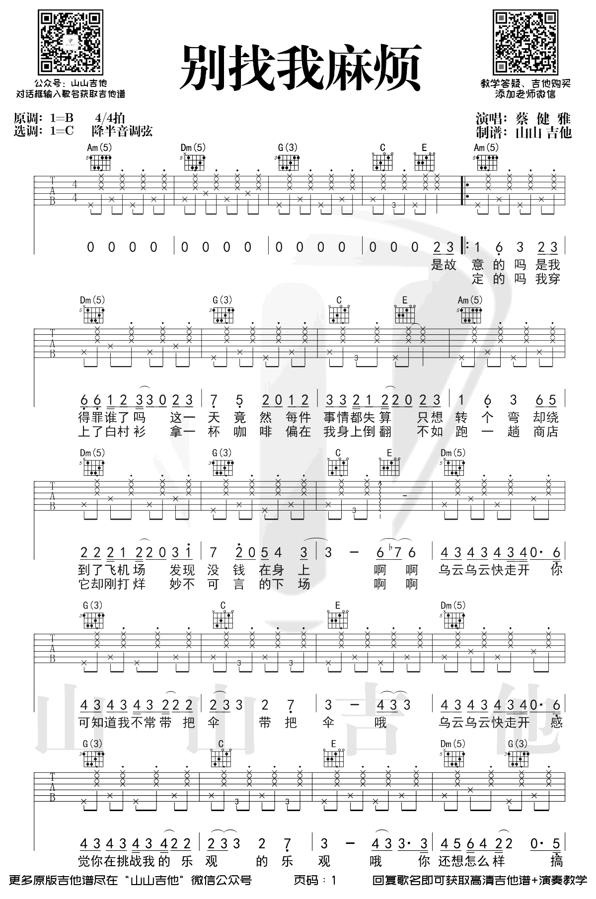 《蔡健雅《别找我麻烦吉他谱》(C调)》内容来自于互联网,不能保证内容的准确性与完整性,仅供学习交流欣赏,请勿用于其它用途,内容版权归原作者及来源网站所有,如有侵犯到您的权益请来信告知,我们将及时删除。