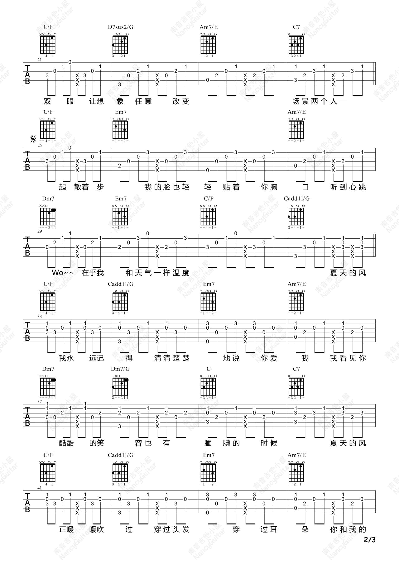 《温岚《夏天的风吉他谱》》内容来自于互联网,不能保证内容的准确性与完整性,仅供学习交流欣赏,请勿用于其它用途,内容版权归原作者及来源网站所有,如有侵犯到您的权益请来信告知,我们将及时删除。