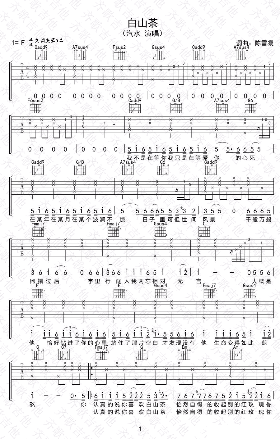 《陈雪凝《白山茶吉他谱》(C调)》内容来自于互联网,不能保证内容的准确性与完整性,仅供学习交流欣赏,请勿用于其它用途,内容版权归原作者及来源网站所有,如有侵犯到您的权益请来信告知,我们将及时删除。
