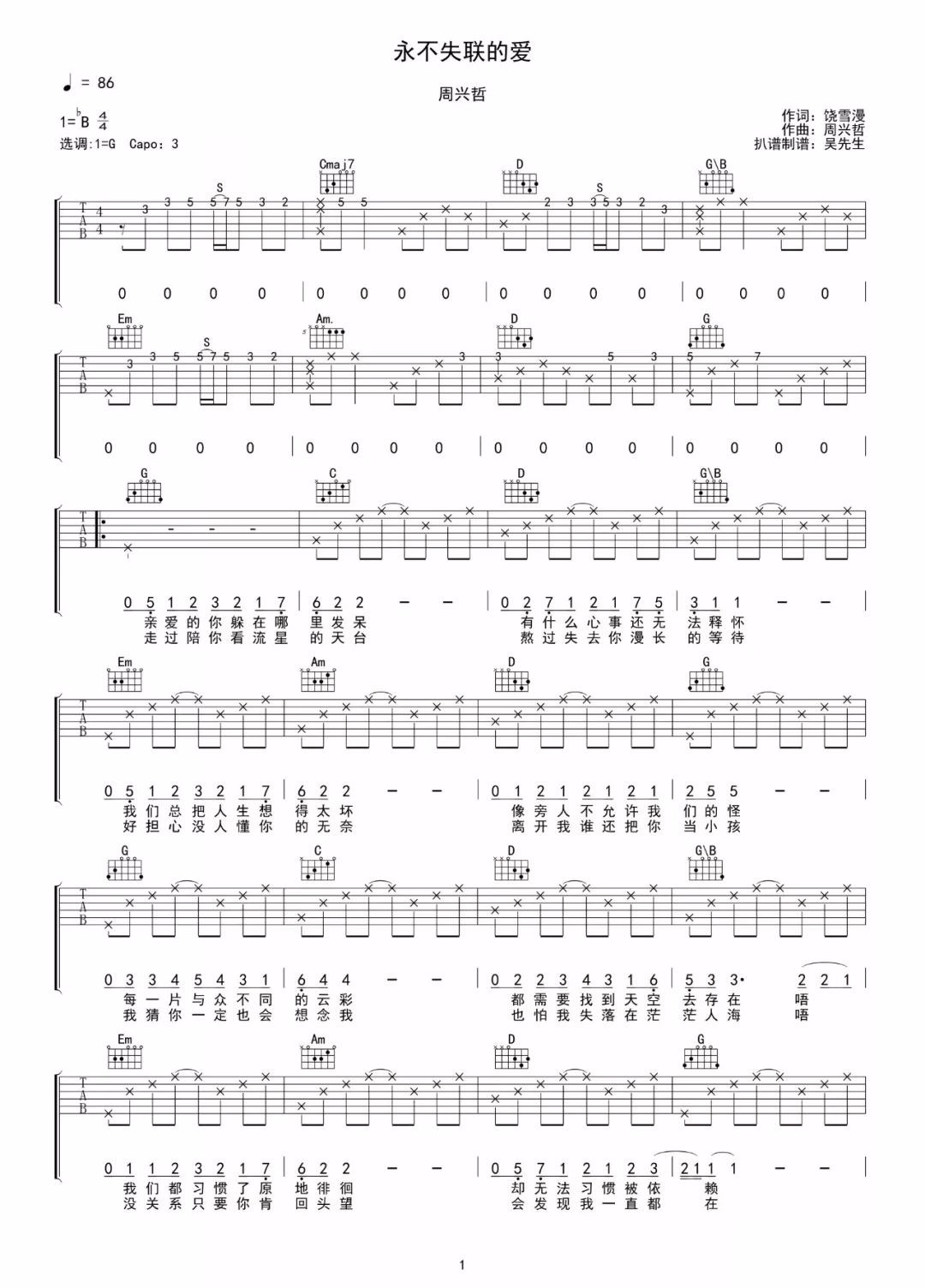 《周兴哲《永不失联的爱吉他谱》(G调)》内容来自于互联网,不能保证内容的准确性与完整性,仅供学习交流欣赏,请勿用于其它用途,内容版权归原作者及来源网站所有,如有侵犯到您的权益请来信告知,我们将及时删除。