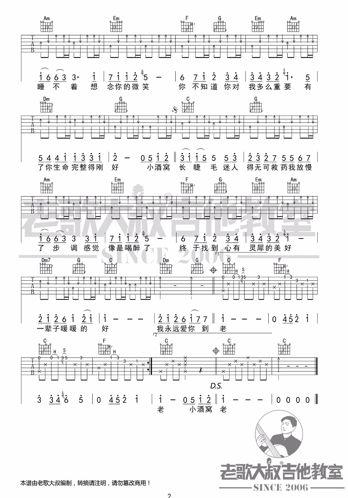 《蔡卓妍《小酒窝吉他谱》(C调)》内容来自于互联网,不能保证内容的准确性与完整性,仅供学习交流欣赏,请勿用于其它用途,内容版权归原作者及来源网站所有,如有侵犯到您的权益请来信告知,我们将及时删除。
