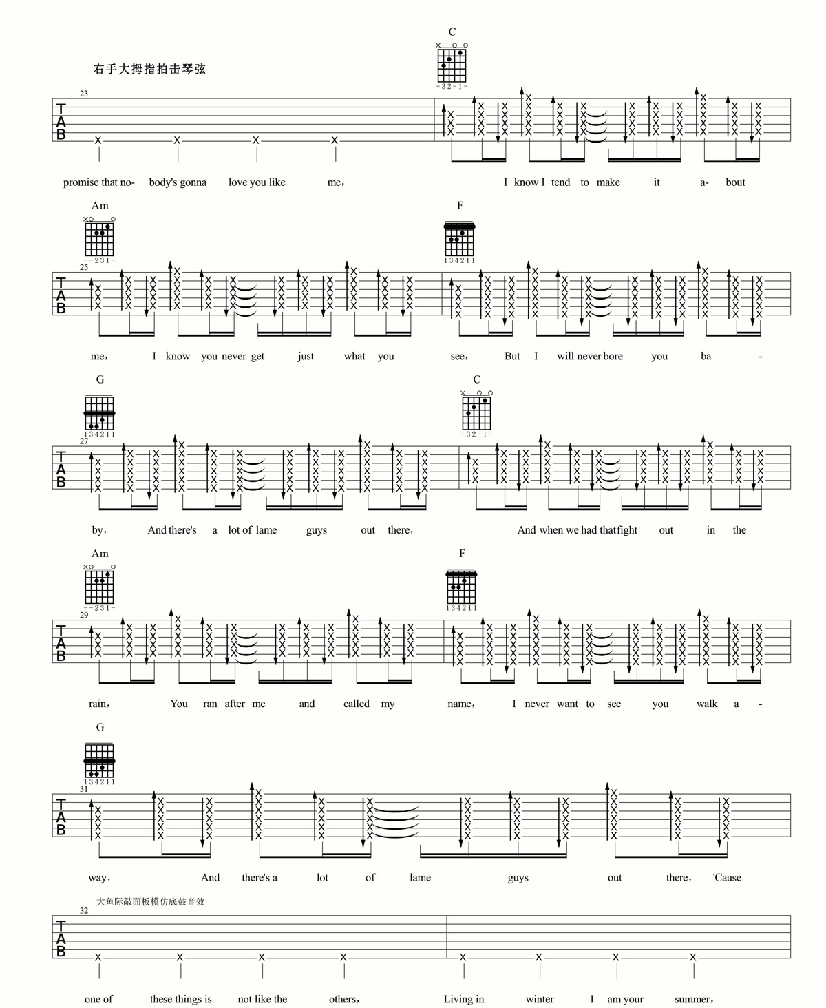 C大调编排而成,适合用于原版《Me吉他谱》(C调)