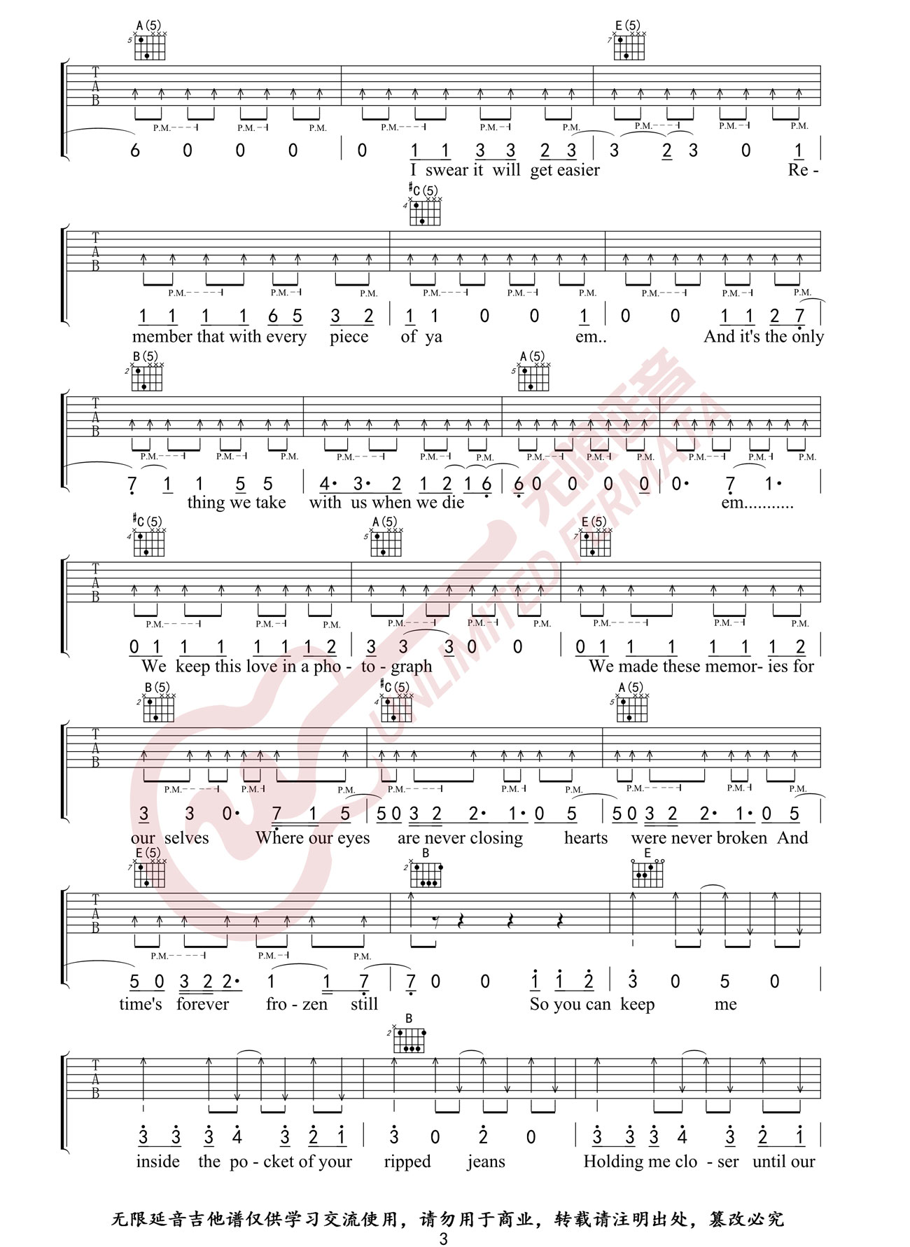 《Photograph》是Ed Sheeran演唱的歌曲,这首歌表达了爱是珍贵的情感。文字描述着爱的复杂性,它既能伤害个体,也可能伤害到其他人。但在这一切背后,相片背后隐藏着一个等待归家的人。这份吉他谱源自于无限延音扒谱制作,以E调为基础编排,保持了原版的风格