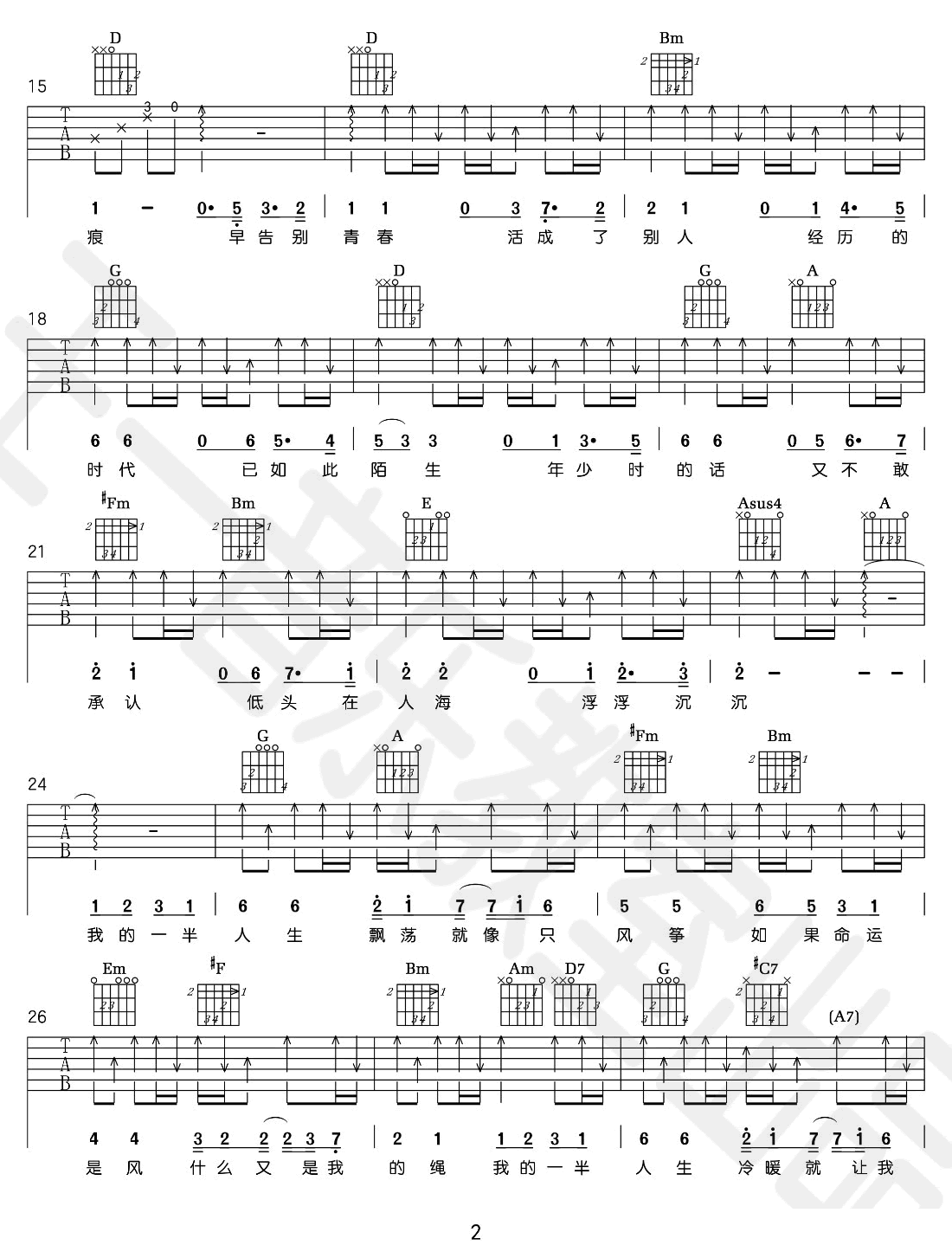 《五月天《一半人生吉他谱》(D调)》内容来自于互联网,不能保证内容的准确性与完整性,仅供学习交流欣赏,请勿用于其它用途,内容版权归原作者及来源网站所有,如有侵犯到您的权益请来信告知,我们将及时删除。