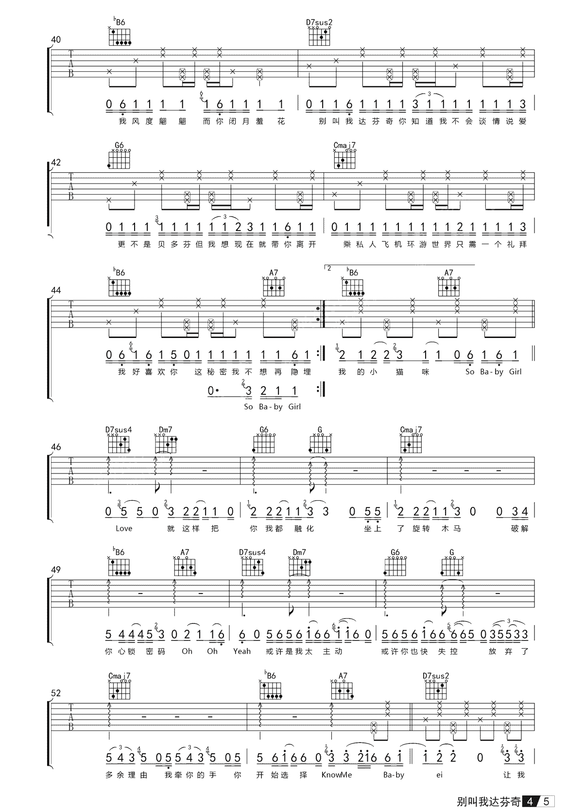 达芬奇《别叫我吉他谱》(C调)