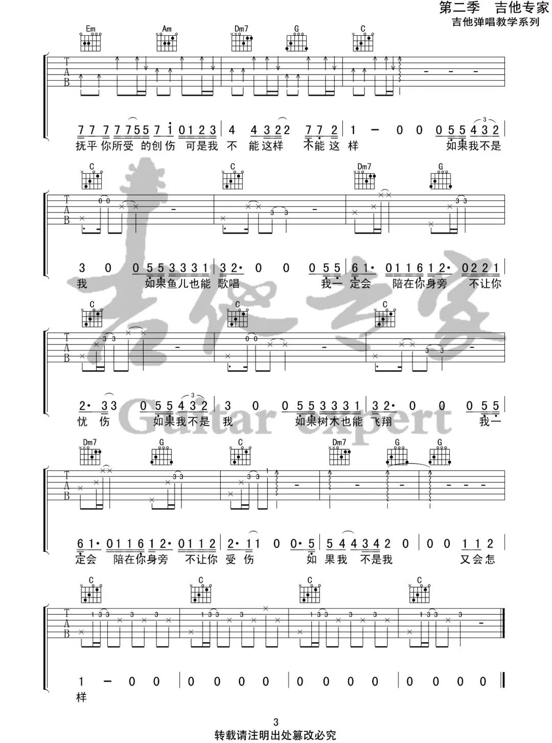 《李宇春《如果我不是我吉他谱》(C调)》内容来自于互联网,不能保证内容的准确性与完整性,仅供学习交流欣赏,请勿用于其它用途,内容版权归原作者及来源网站所有,如有侵犯到您的权益请来信告知,我们将及时删除。