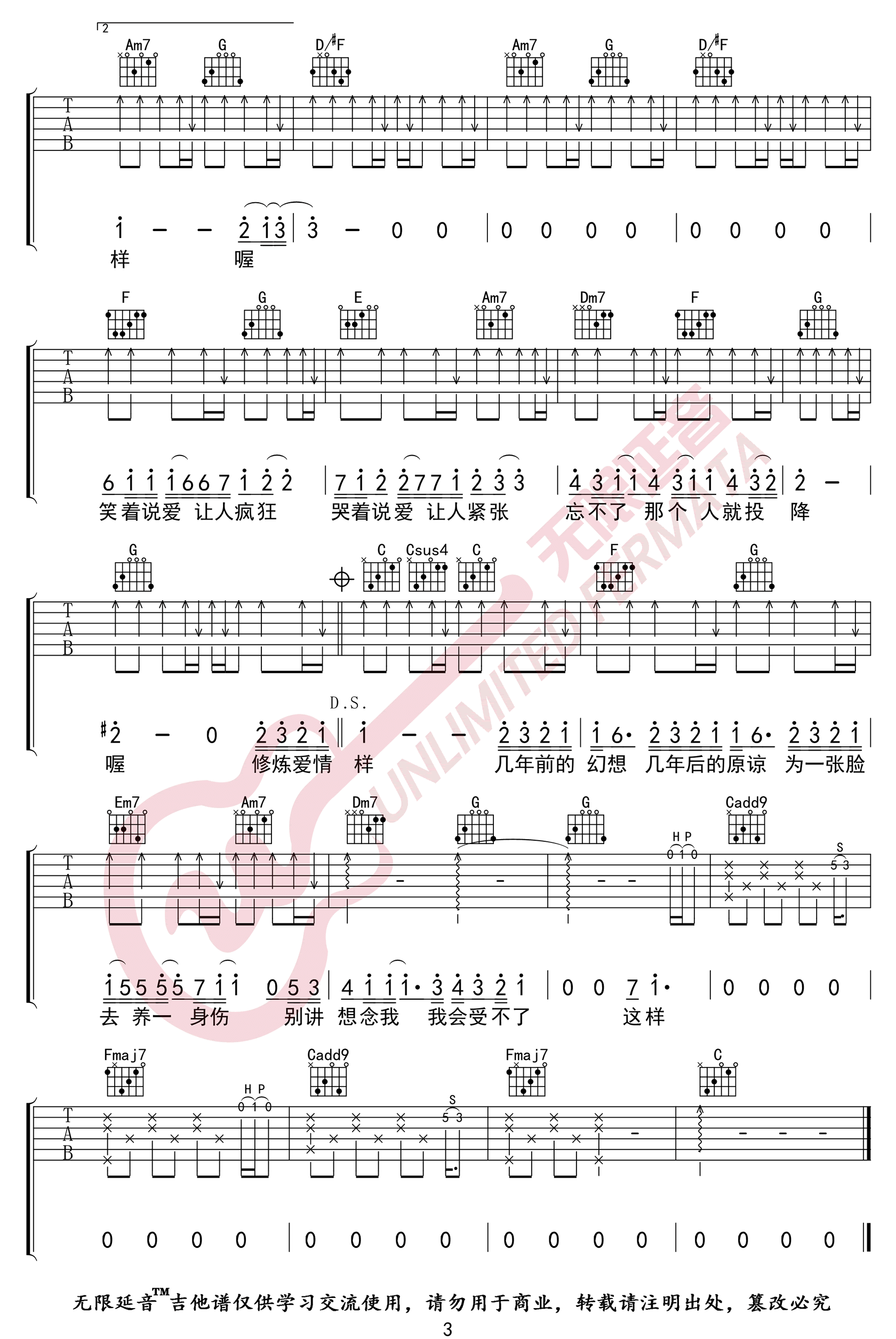 《林俊杰《修炼爱情吉他谱》(C调)》内容来自于互联网,不能保证内容的准确性与完整性,仅供学习交流欣赏,请勿用于其它用途,内容版权归原作者及来源网站所有,如有侵犯到您的权益请来信告知,我们将及时删除。