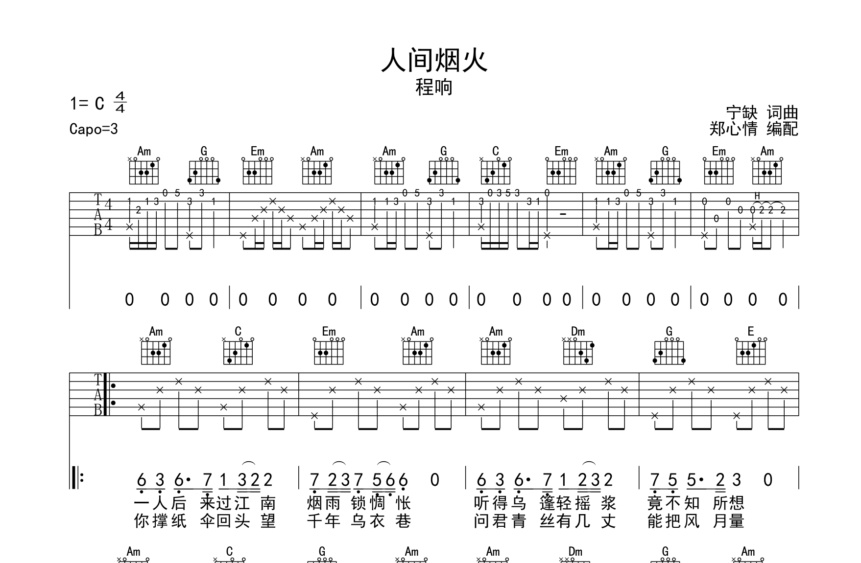 《程响《人间烟火吉他谱》(C调)》内容来自于互联网,不能保证内容的准确性与完整性,仅供学习交流欣赏,请勿用于其它用途,内容版权归原作者及来源网站所有,如有侵犯到您的权益请来信告知,我们将及时删除。