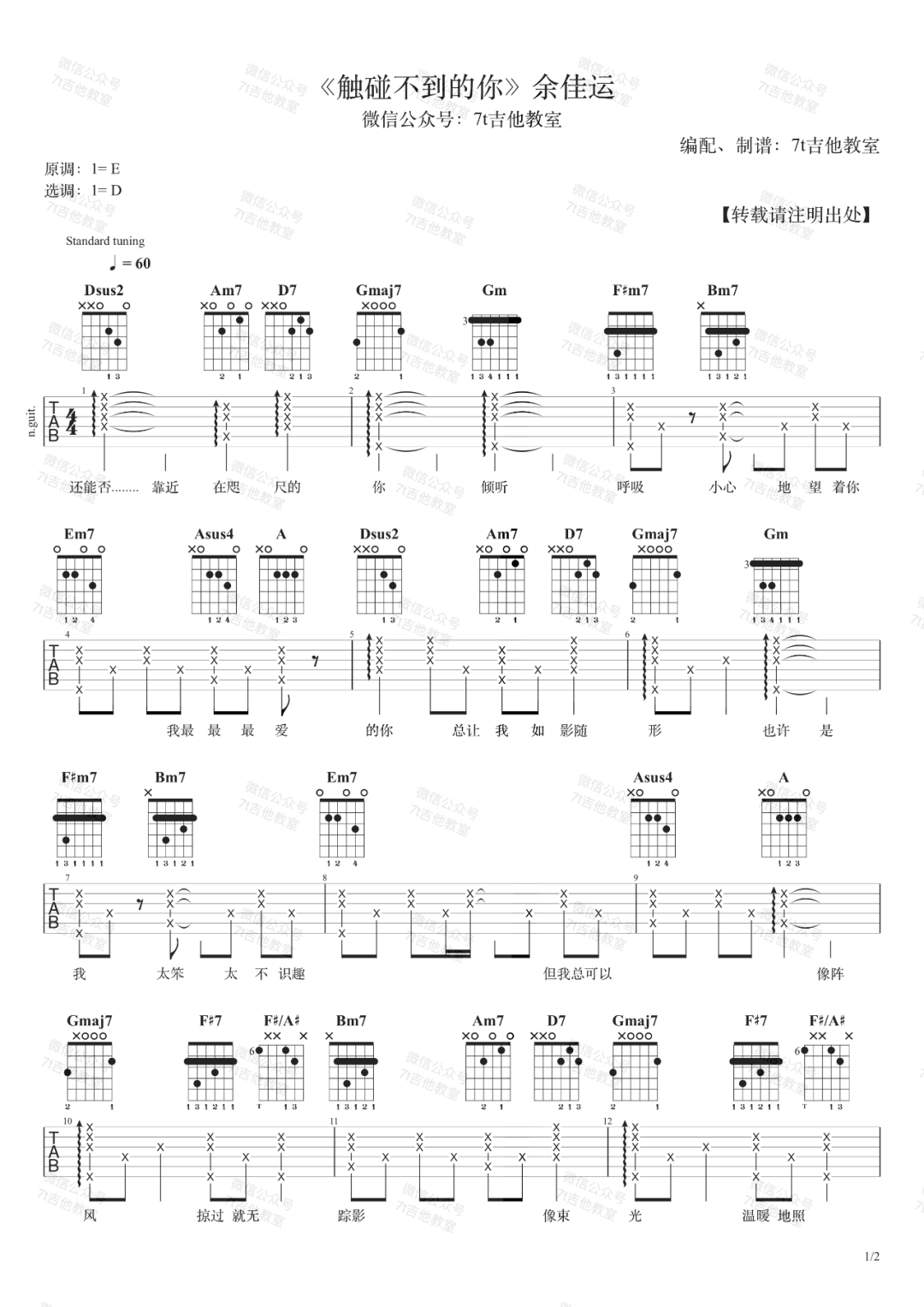 《余佳运《触碰不到的你吉他谱》(D调)》内容来自于互联网,不能保证内容的准确性与完整性,仅供学习交流欣赏,请勿用于其它用途,内容版权归原作者及来源网站所有,如有侵犯到您的权益请来信告知,我们将及时删除。