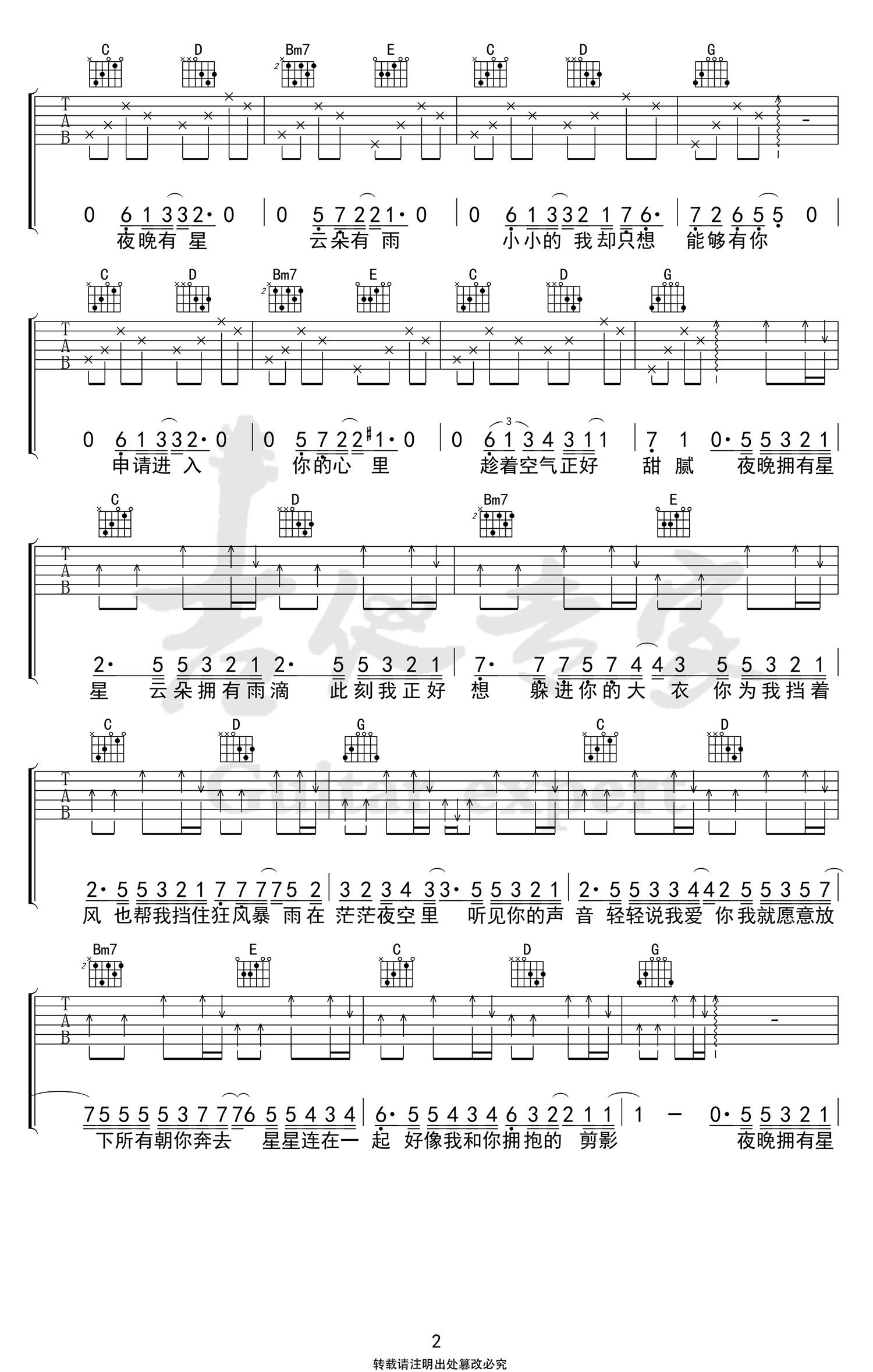 《蓝心羽《星空剪影吉他谱》(G调)》内容来自于互联网,不能保证内容的准确性与完整性,仅供学习交流欣赏,请勿用于其它用途,内容版权归原作者及来源网站所有,如有侵犯到您的权益请来信告知,我们将及时删除。