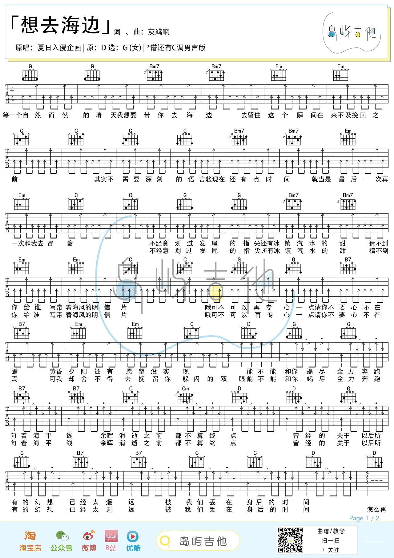 《夏日入侵企画《想去海边吉他谱》(G调)》内容来自于互联网,不能保证内容的准确性与完整性,仅供学习交流欣赏,请勿用于其它用途,内容版权归原作者及来源网站所有,如有侵犯到您的权益请来信告知,我们将及时删除。