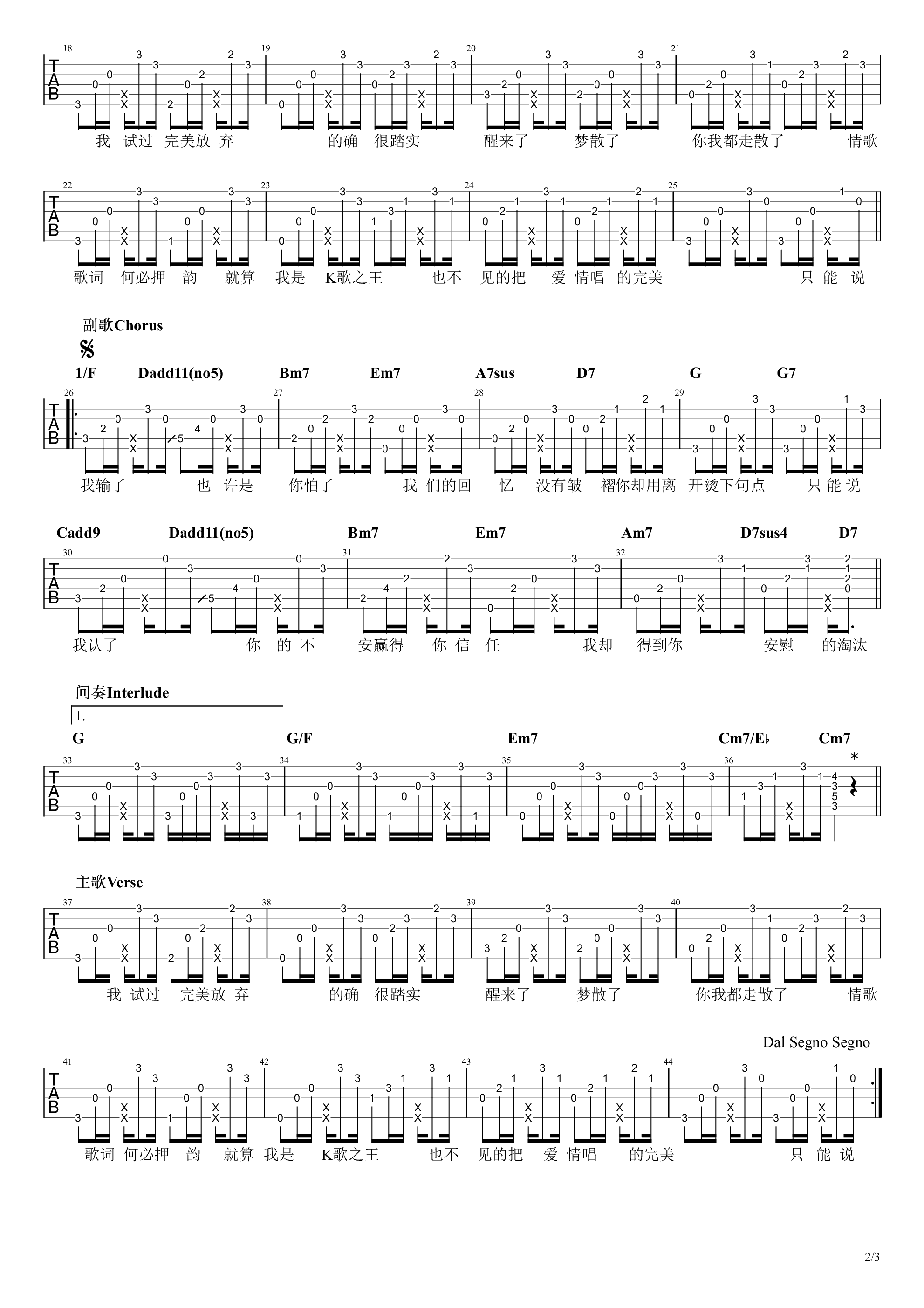 《陈奕迅《淘汰吉他谱》(G调)》内容来自于互联网,不能保证内容的准确性与完整性,仅供学习交流欣赏,请勿用于其它用途,内容版权归原作者及来源网站所有,如有侵犯到您的权益请来信告知,我们将及时删除。
