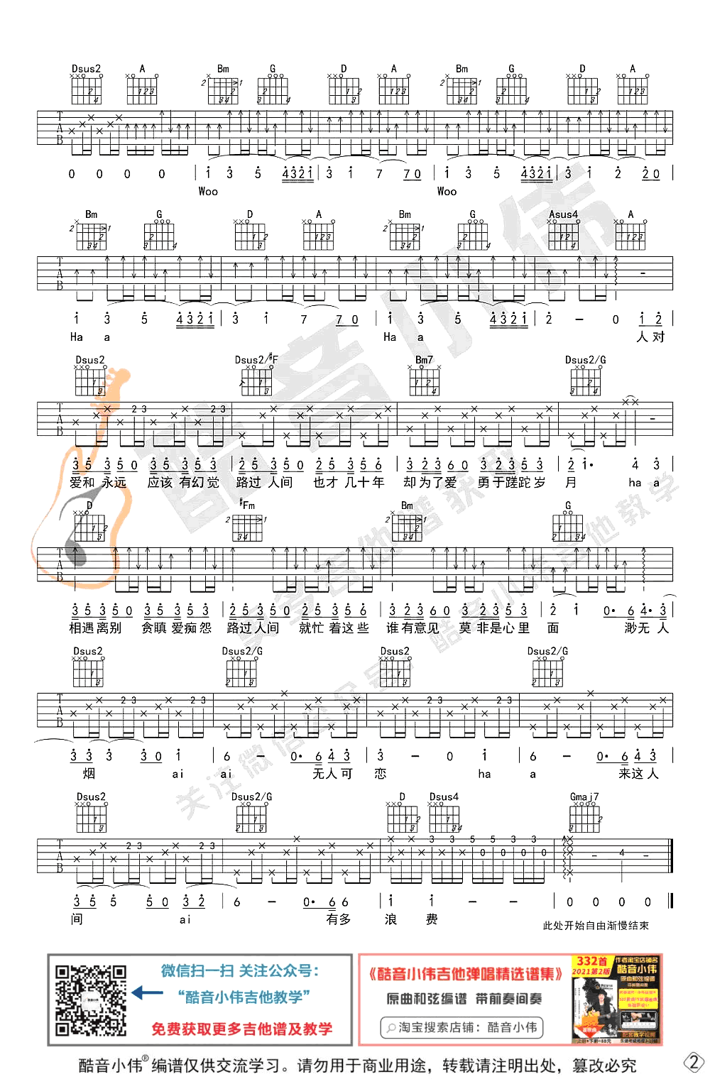 《郁可唯《路过人间吉他谱》(D调)》内容来自于互联网,不能保证内容的准确性与完整性,仅供学习交流欣赏,请勿用于其它用途,内容版权归原作者及来源网站所有,如有侵犯到您的权益请来信告知,我们将及时删除。