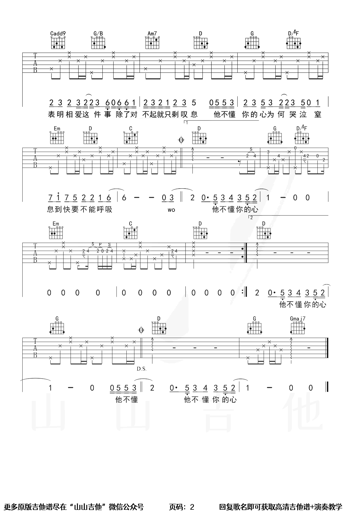 《张杰《他不懂吉他谱》(G调)》内容来自于互联网,不能保证内容的准确性与完整性,仅供学习交流欣赏,请勿用于其它用途,内容版权归原作者及来源网站所有,如有侵犯到您的权益请来信告知,我们将及时删除。