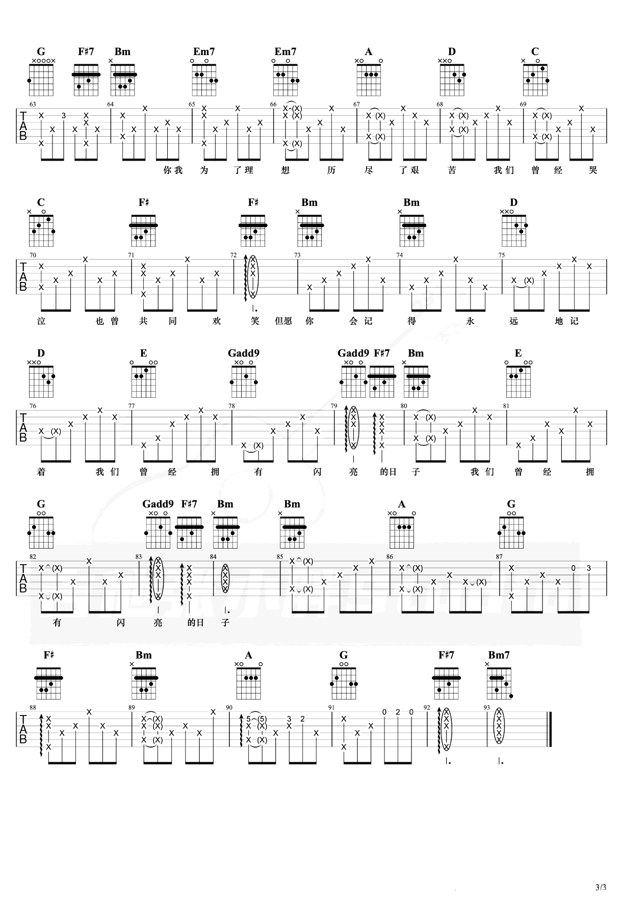 《罗大佑《闪亮的日子吉他谱》(D调)》内容来自于互联网,不能保证内容的准确性与完整性,仅供学习交流欣赏,请勿用于其它用途,内容版权归原作者及来源网站所有,如有侵犯到您的权益请来信告知,我们将及时删除。