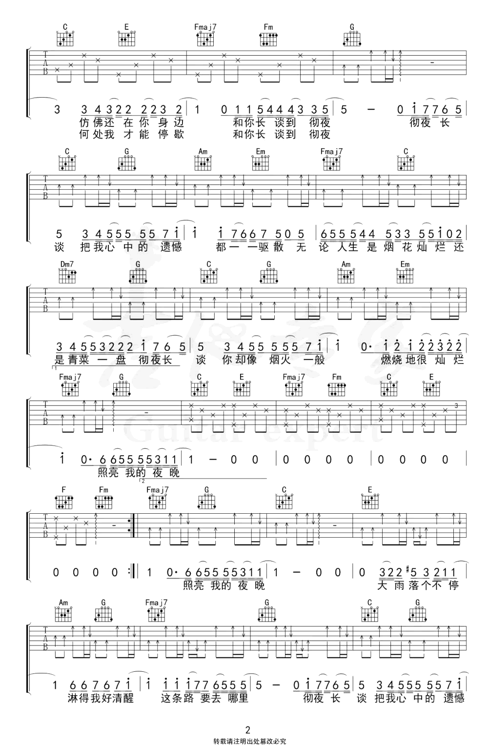 《崔开潮《彻夜长谈吉他谱》(C调)》内容来自于互联网,不能保证内容的准确性与完整性,仅供学习交流欣赏,请勿用于其它用途,内容版权归原作者及来源网站所有,如有侵犯到您的权益请来信告知,我们将及时删除。