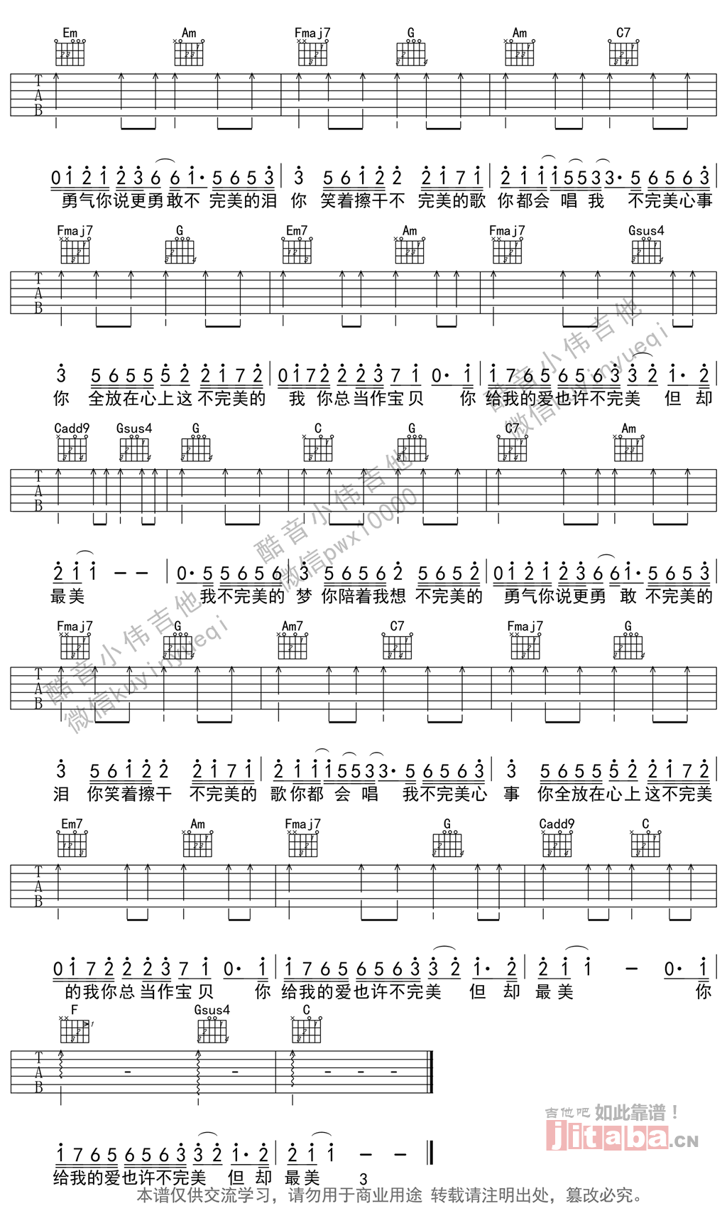 《TFBOYS《不完美小孩吉他谱》》内容来自于互联网,不能保证内容的准确性与完整性,仅供学习交流欣赏,请勿用于其它用途,内容版权归原作者及来源网站所有,如有侵犯到您的权益请来信告知,我们将及时删除。