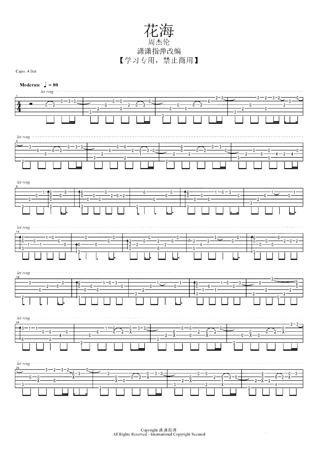 《周杰伦《花海吉他谱》》内容来自于互联网,不能保证内容的准确性与完整性,仅供学习交流欣赏,请勿用于其它用途,内容版权归原作者及来源网站所有,如有侵犯到您的权益请来信告知,我们将及时删除。