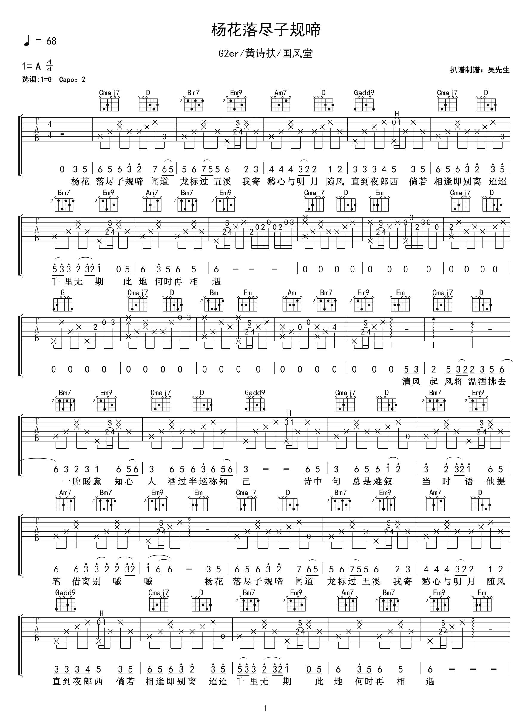 《国风堂《杨花落尽子规啼吉他谱》(G调)》内容来自于互联网,不能保证内容的准确性与完整性,仅供学习交流欣赏,请勿用于其它用途,内容版权归原作者及来源网站所有,如有侵犯到您的权益请来信告知,我们将及时删除。